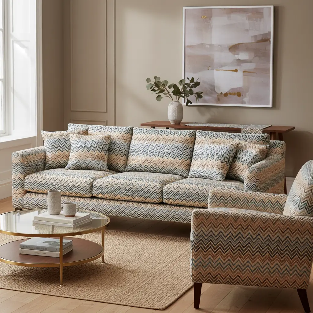Tessuto per arredo Gobelin a fantasia motivo geometrico azzurro – blu – beige