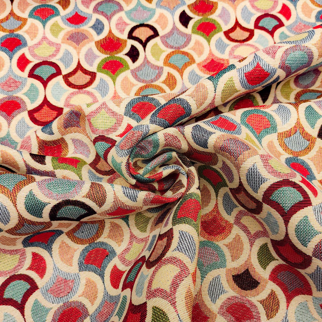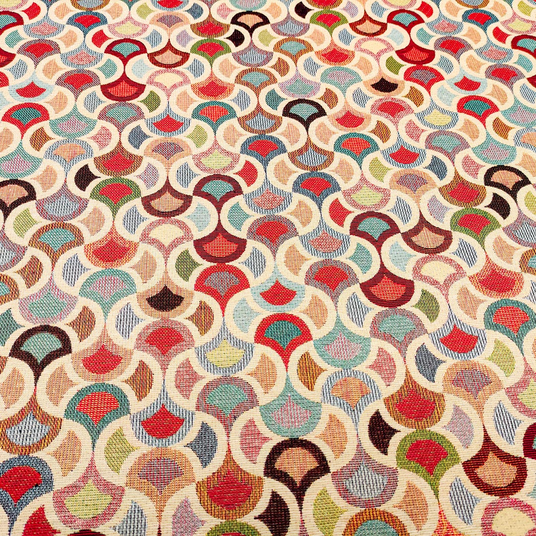 Tessuto per arredo Gobelin a fantasia dalla mano resistente e sostenuta, si presta alla creazione di complementi d’arredo colorati e vivaci come: runner, cuscini, copri tavolo e rivestimenti di divani e poltrone, inoltre è particolarmente utilizzato per realizzare borse e oggettistica.