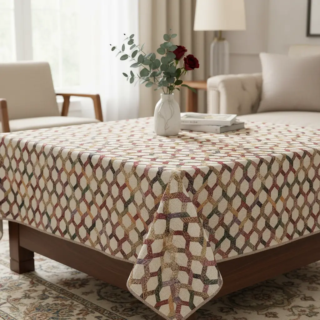 Tessuto per arredo Gobelin a fantasia motivo geometrico beige – ocra – bordeaux