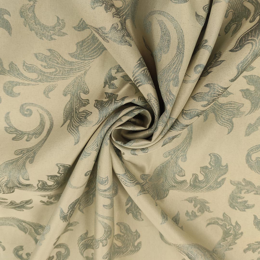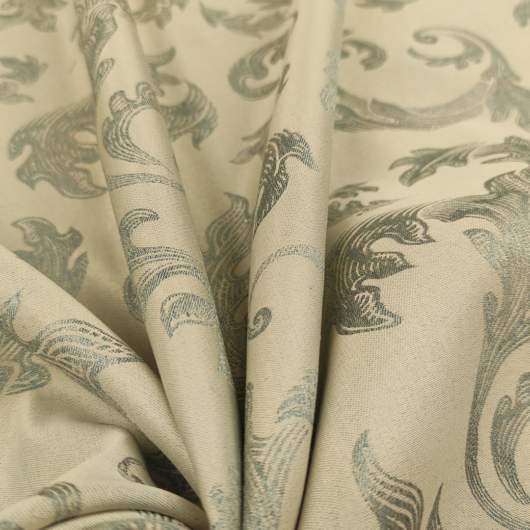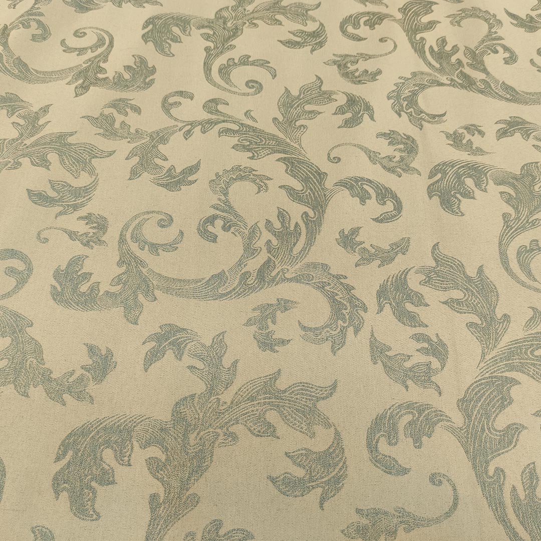 Tessuto Raso damascato per arredo motivo floreale barocco acquamarina – grigio