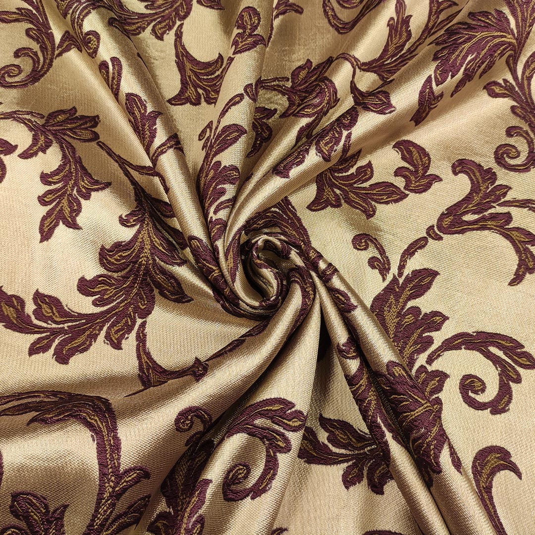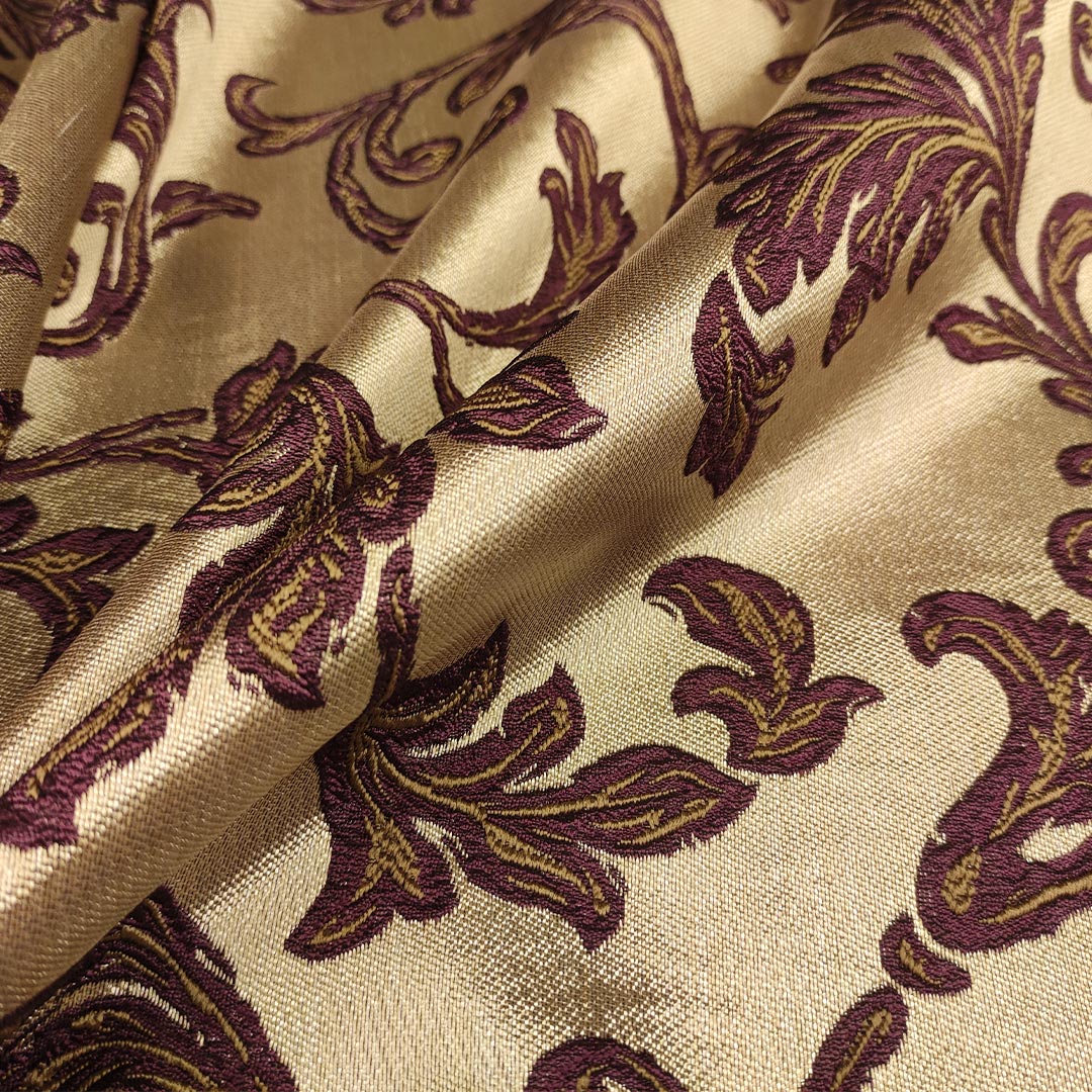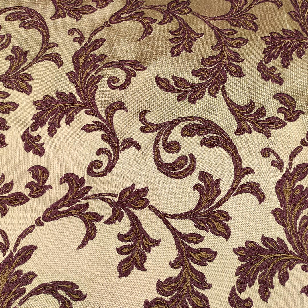 Tessuto Raso damascato per arredo motivo floreale barocco vinaccio – bronzo