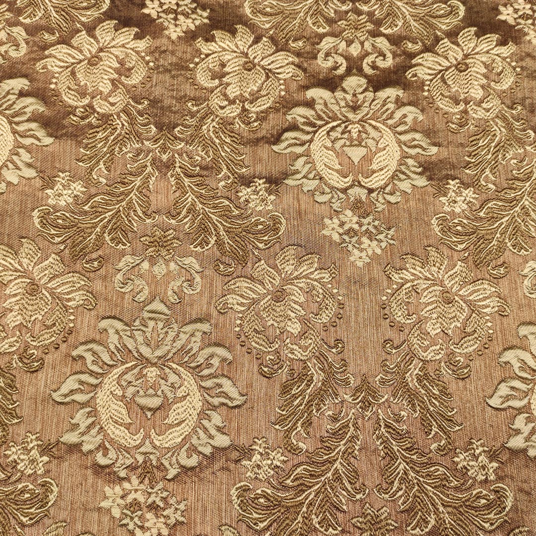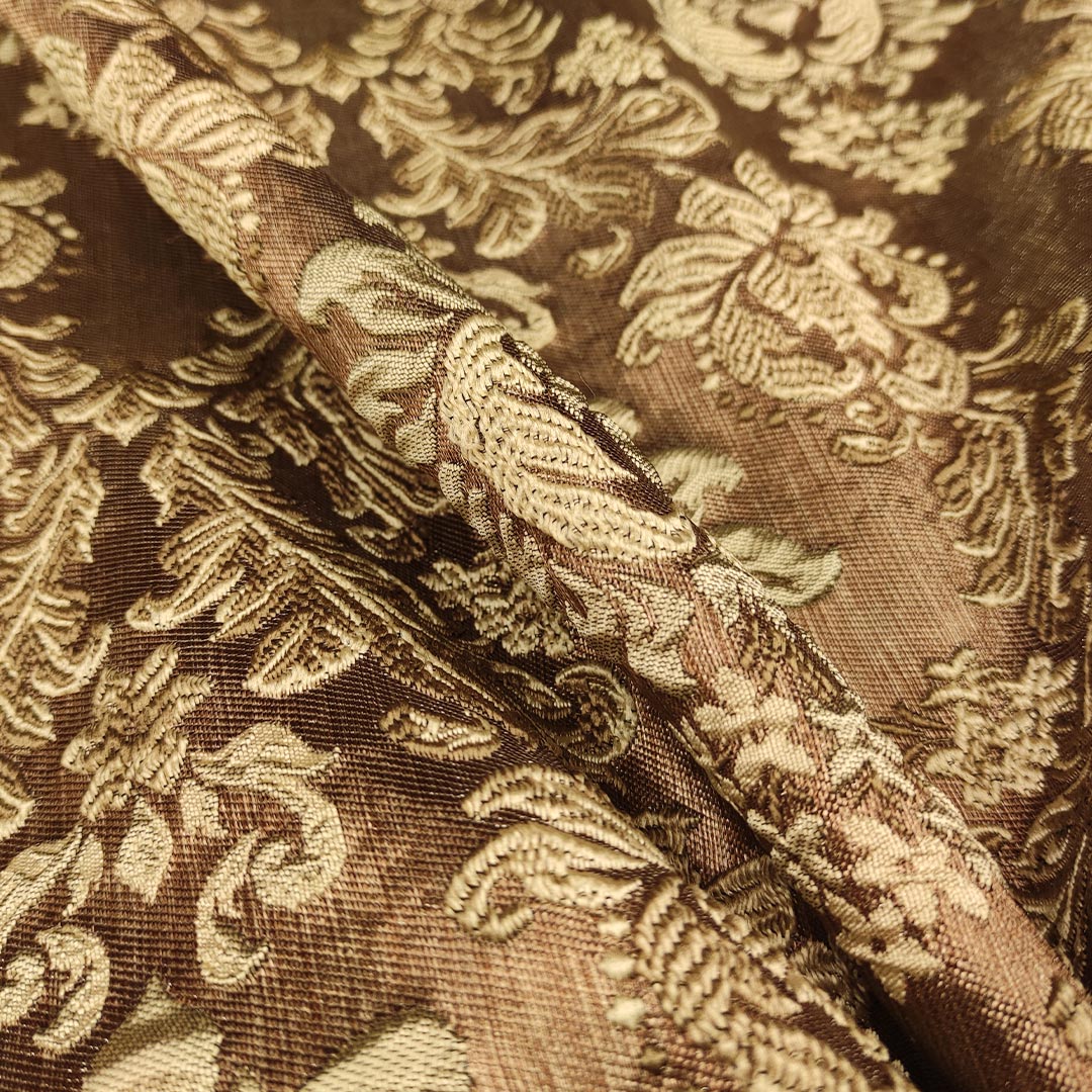 Tessuto Raso damascato per arredo motivo floreale cashmere beige – bronzo