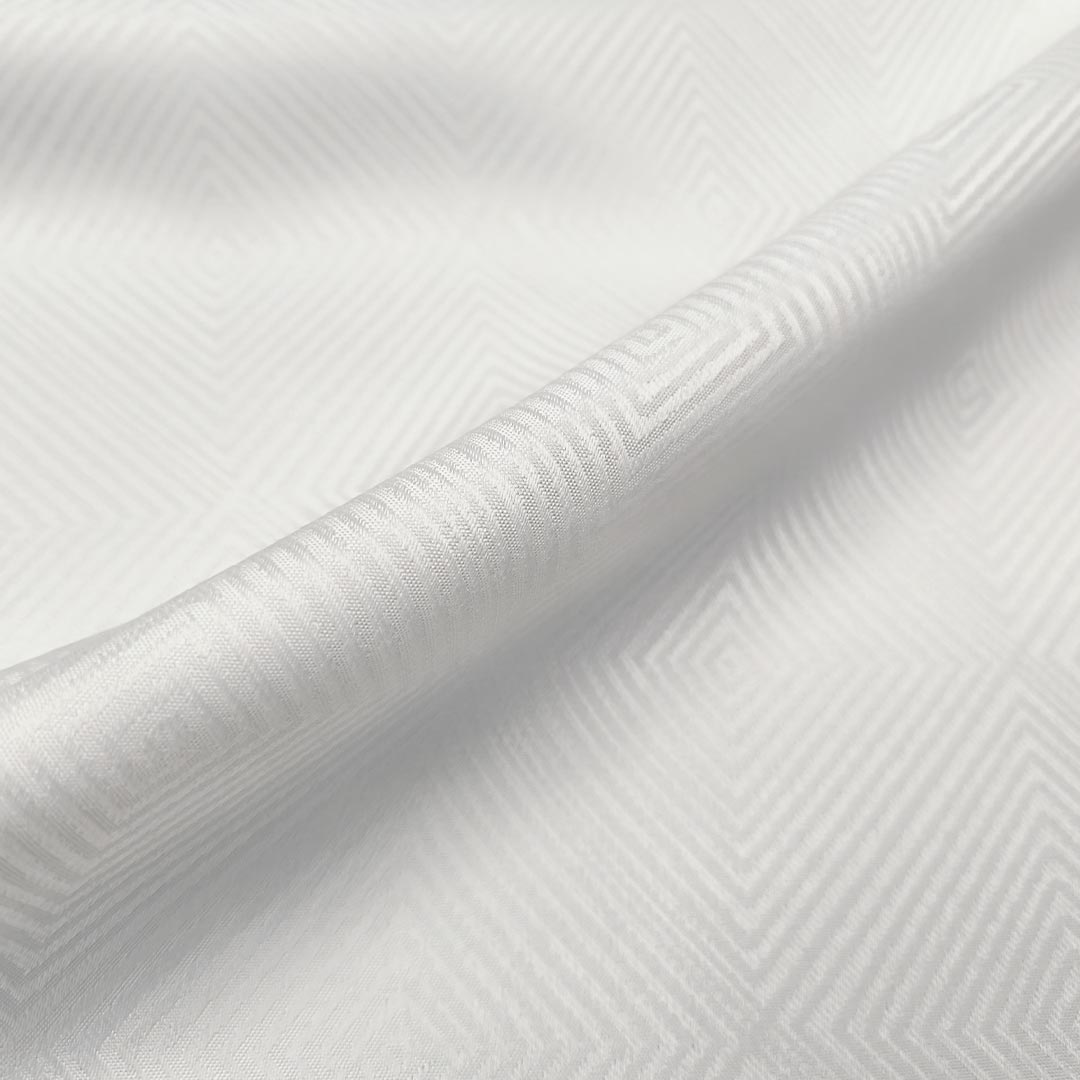 Tessuto Raso damascato per arredo motivo geometrico bianco
