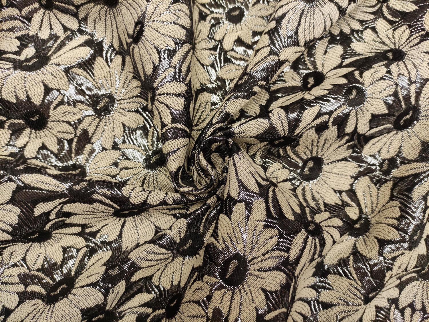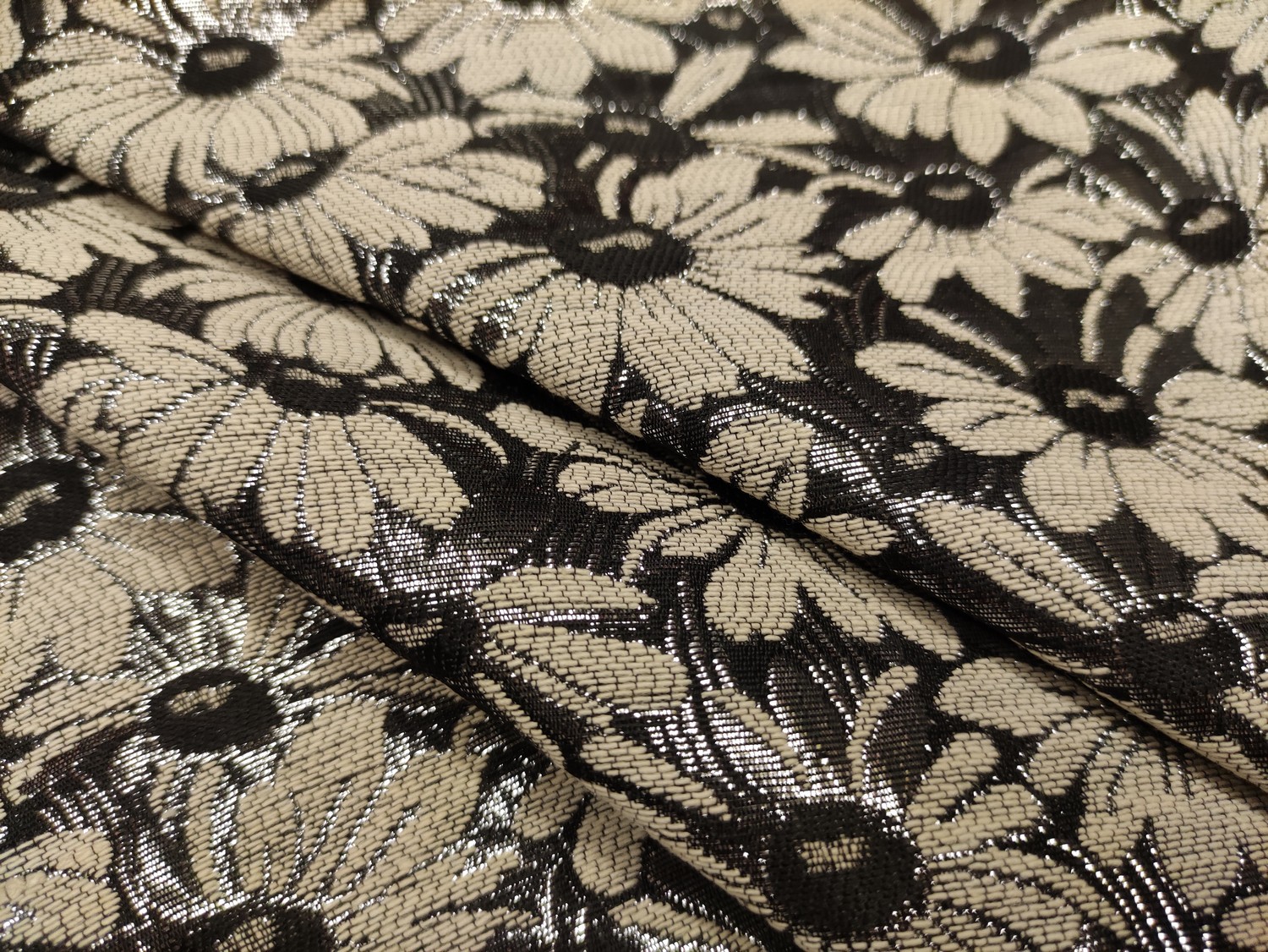 Tessuto Broccato in cotone motivo floreale beige – nero