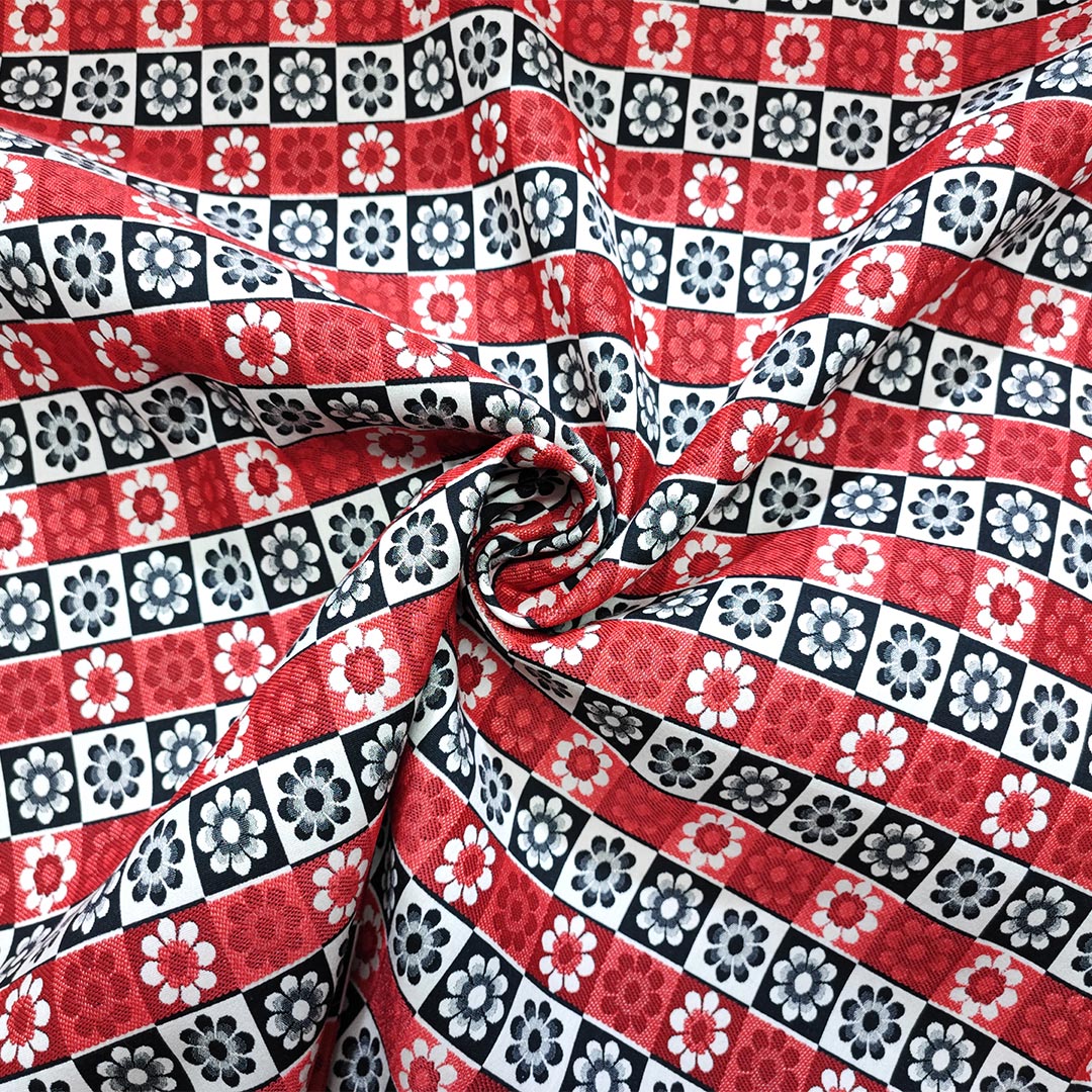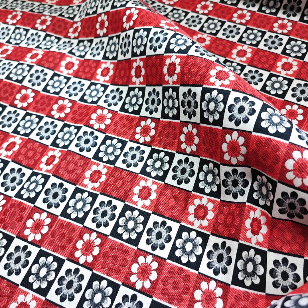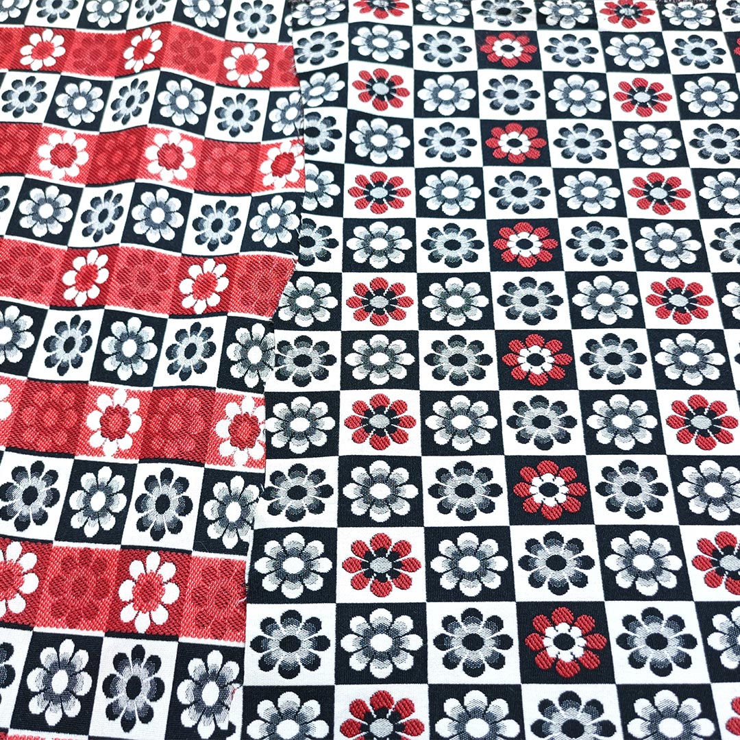 Tessuto Broccato in cotone motivo geometrico rosso – bianco – nero