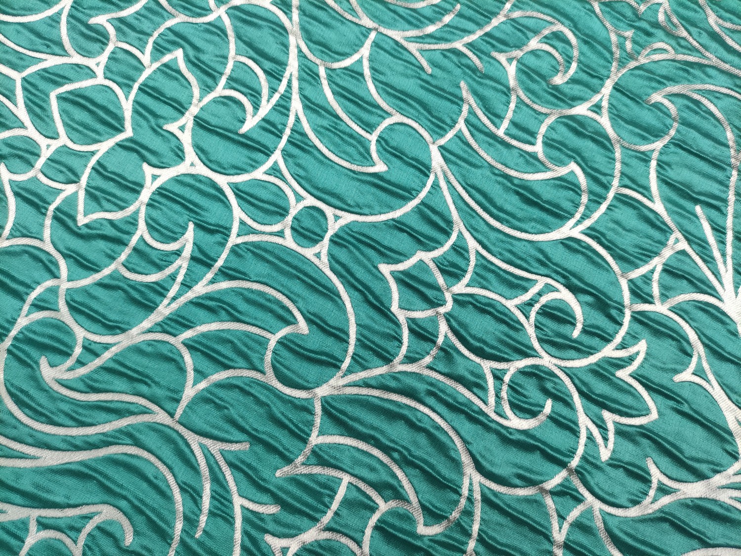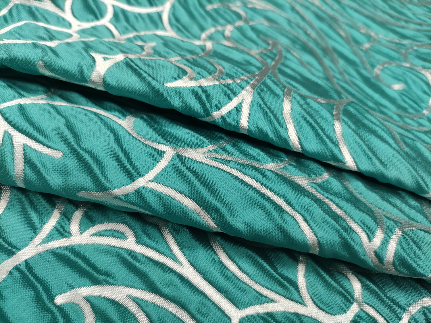 Tessuto Broccato in seta motivo astratto argento – verde tiffany