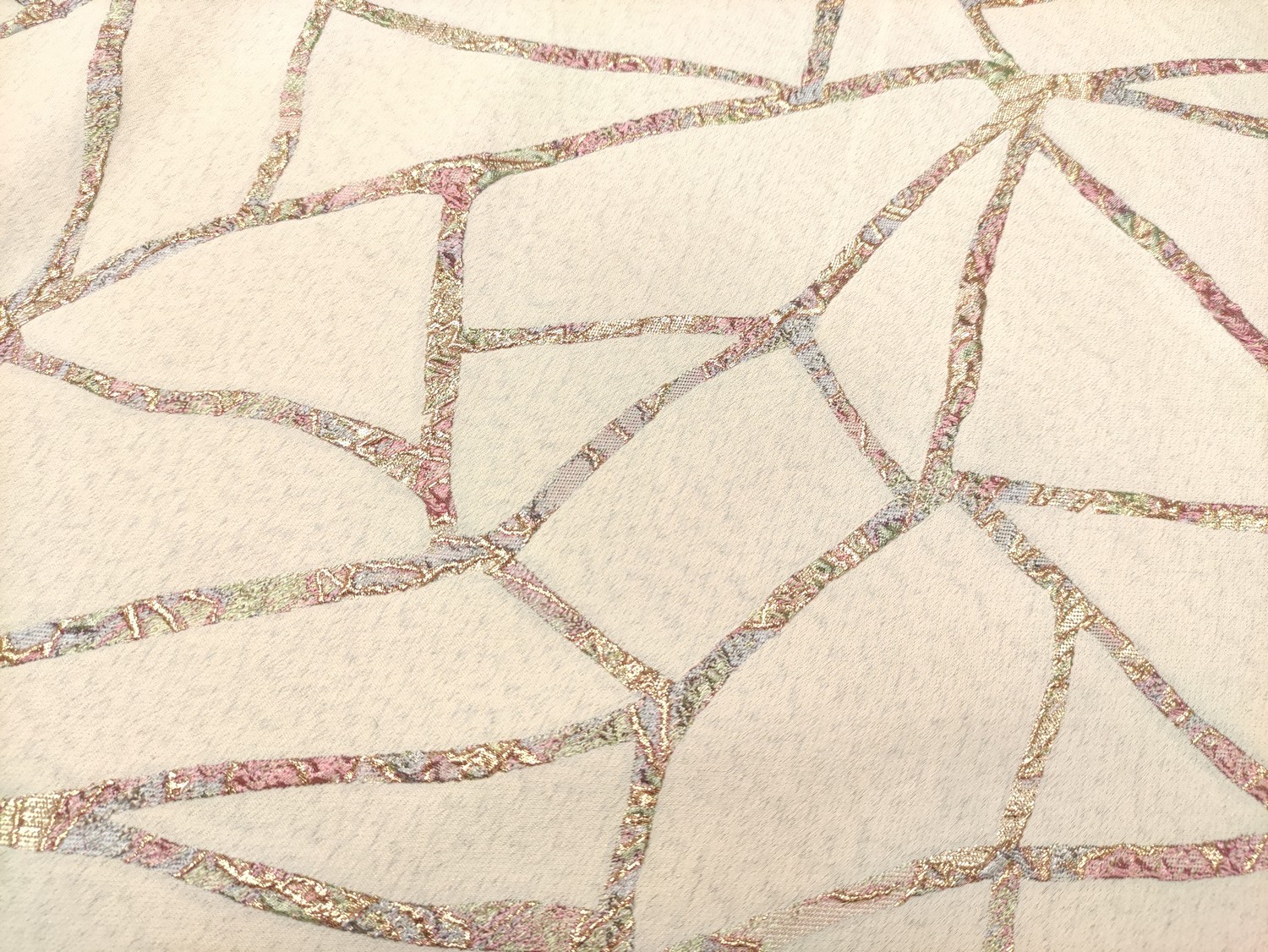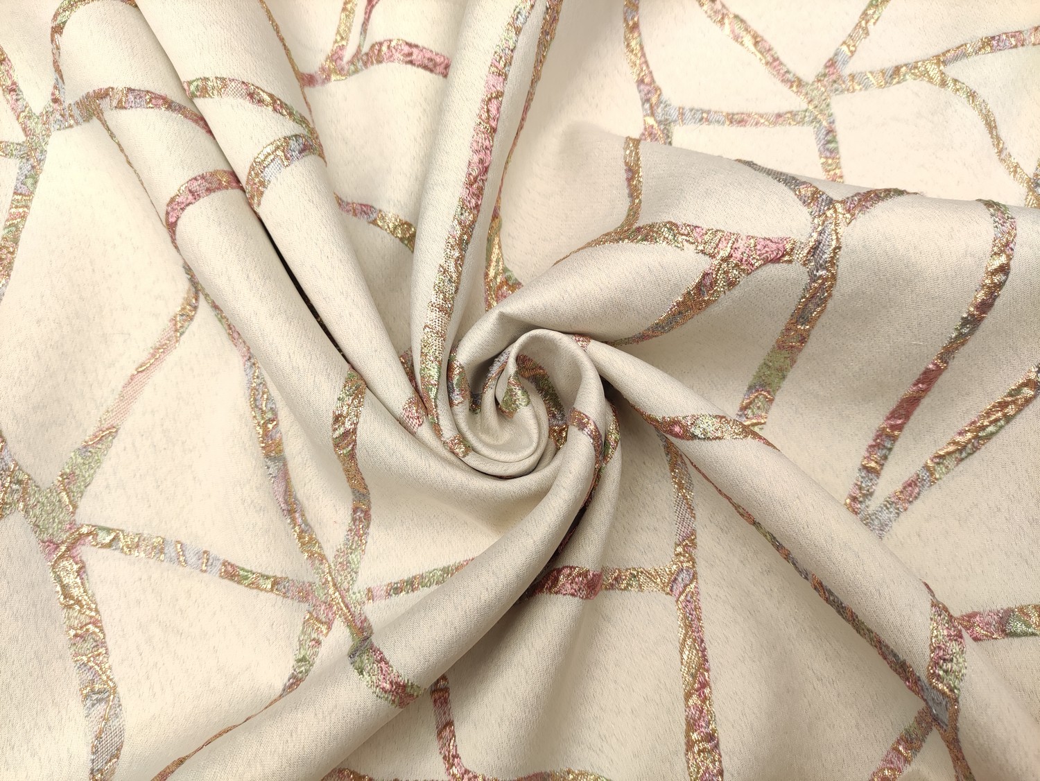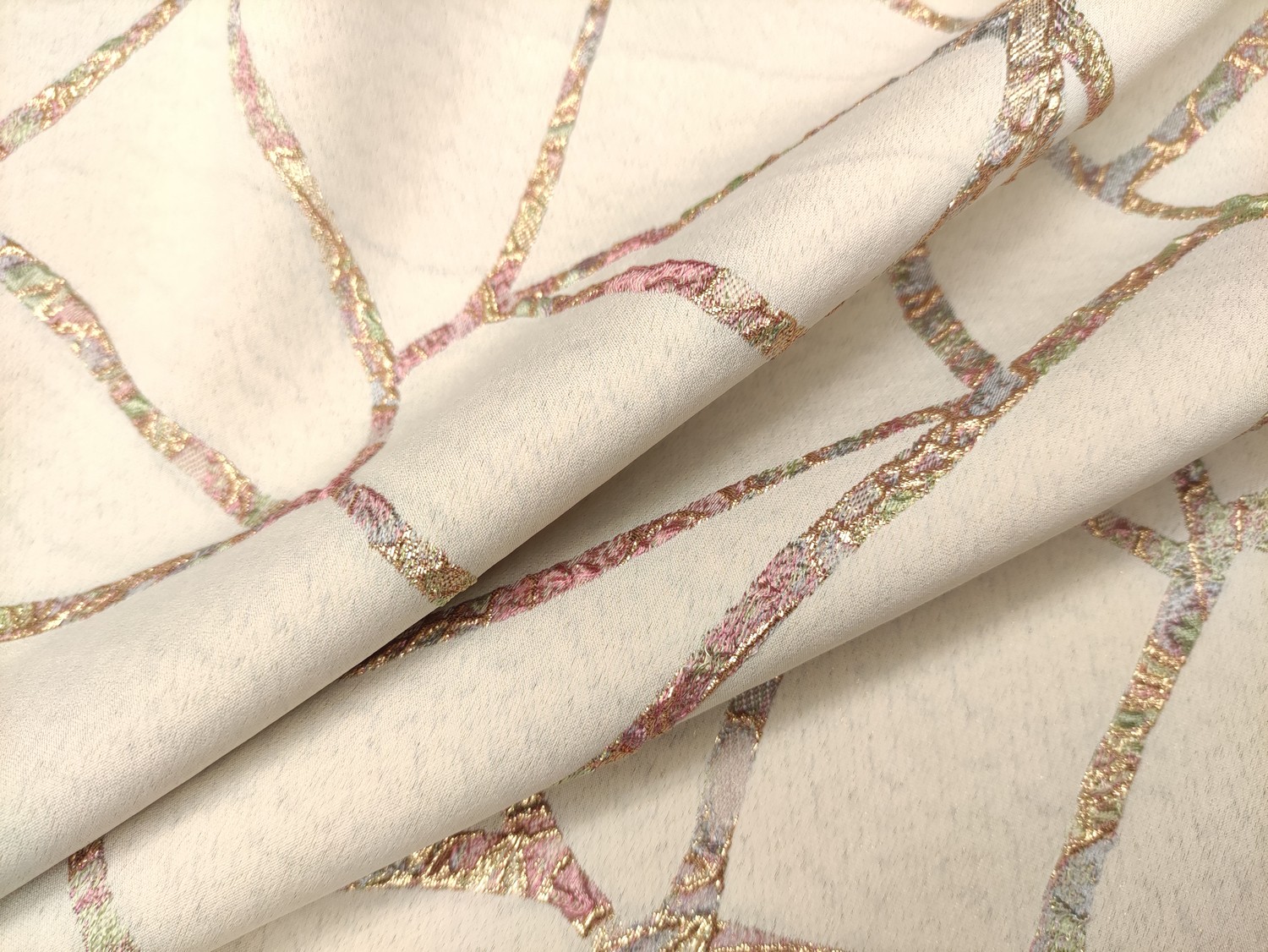 Tessuto Broccato in seta motivo astratto beige – oro – rosa