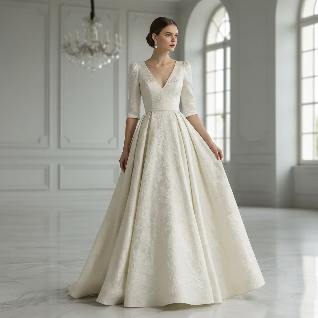 Tessuto Broccato in seta ideale per realizzare capi eleganti e strutturati, si presta alla creazione di abiti ampi, giacche e gonne.