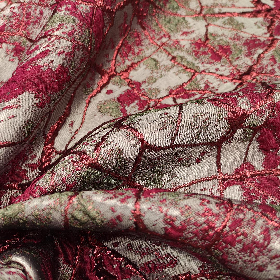 Tessuto Broccato in seta motivo astratto bordeaux – rame – grigio