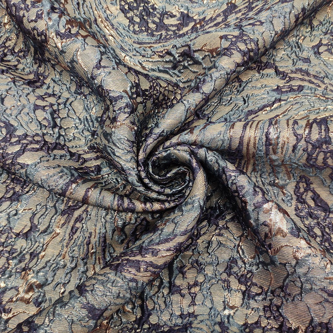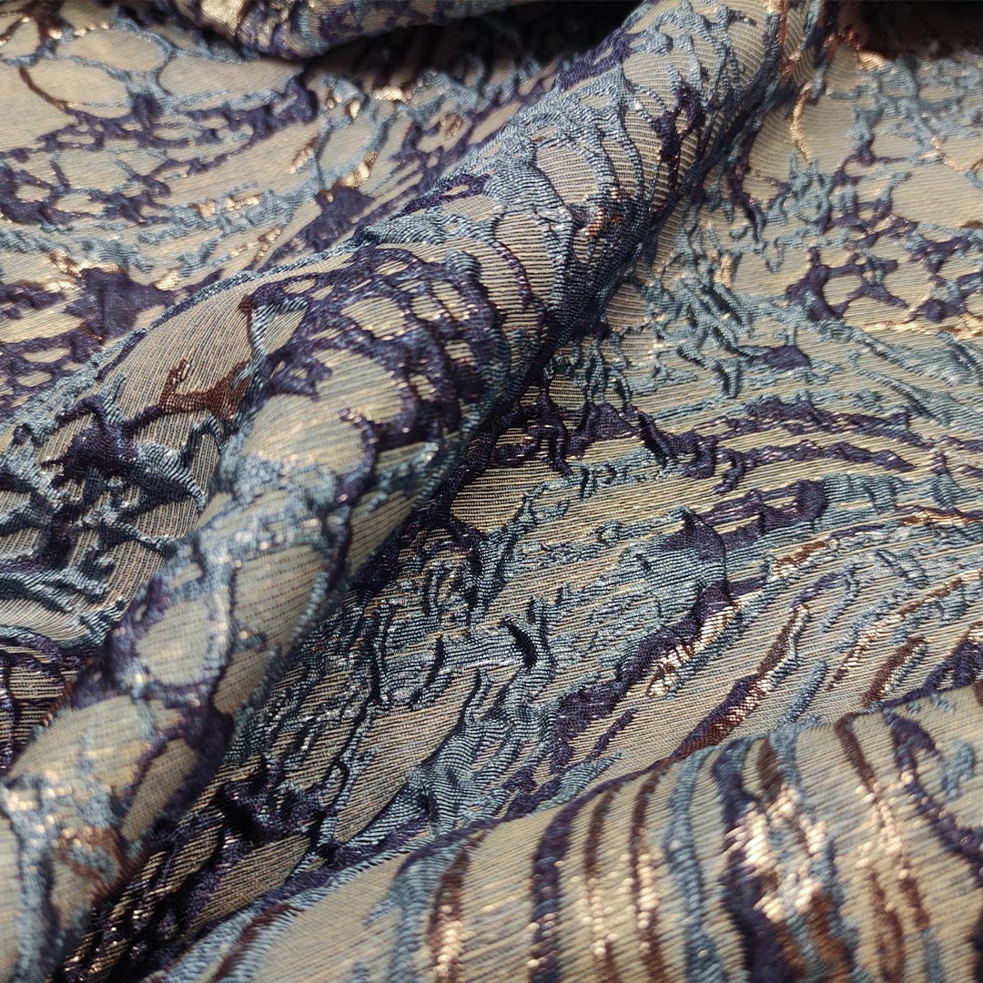 Tessuto Broccato in seta motivo astratto carta da zucchero – argento – blu navy