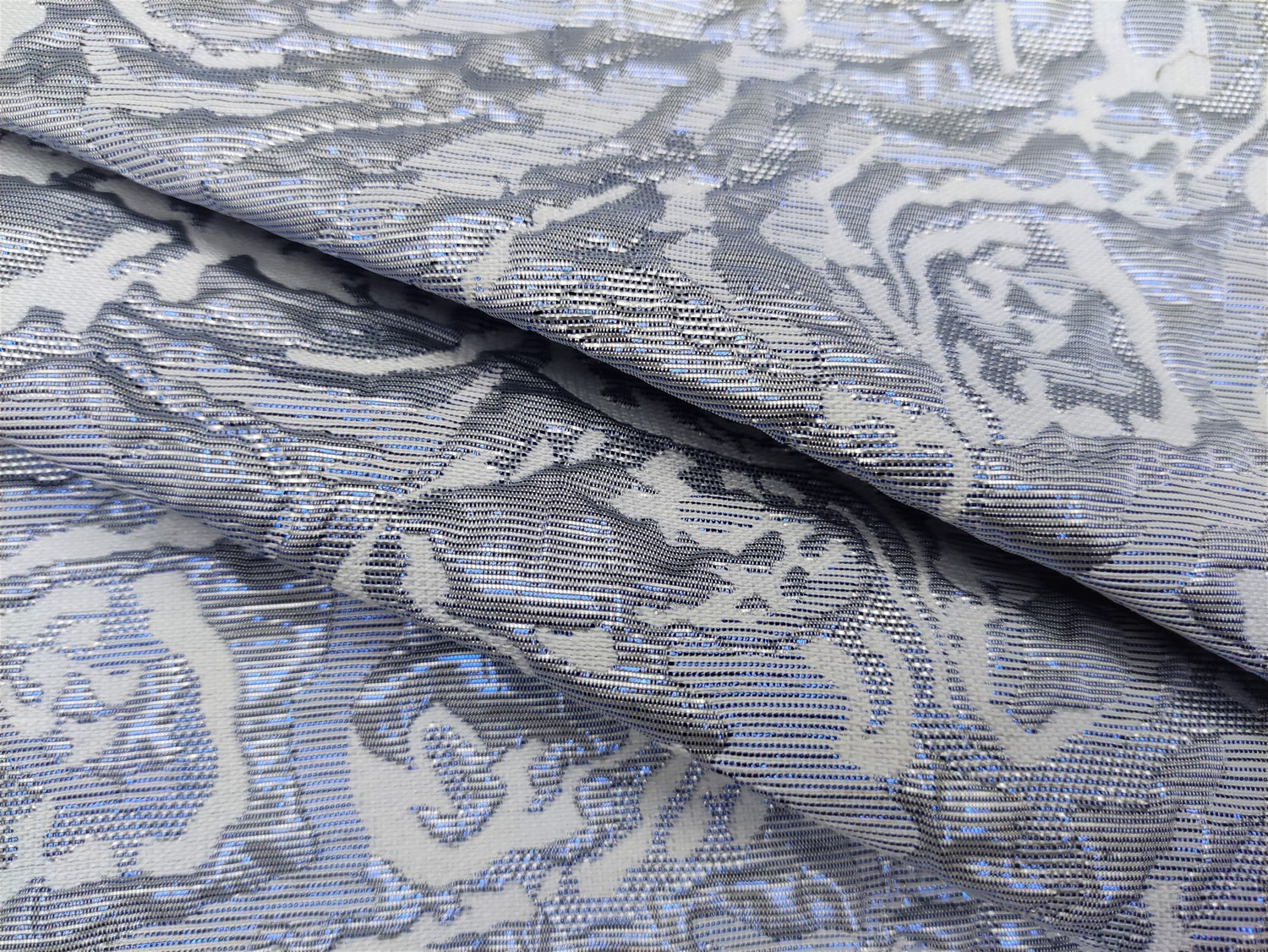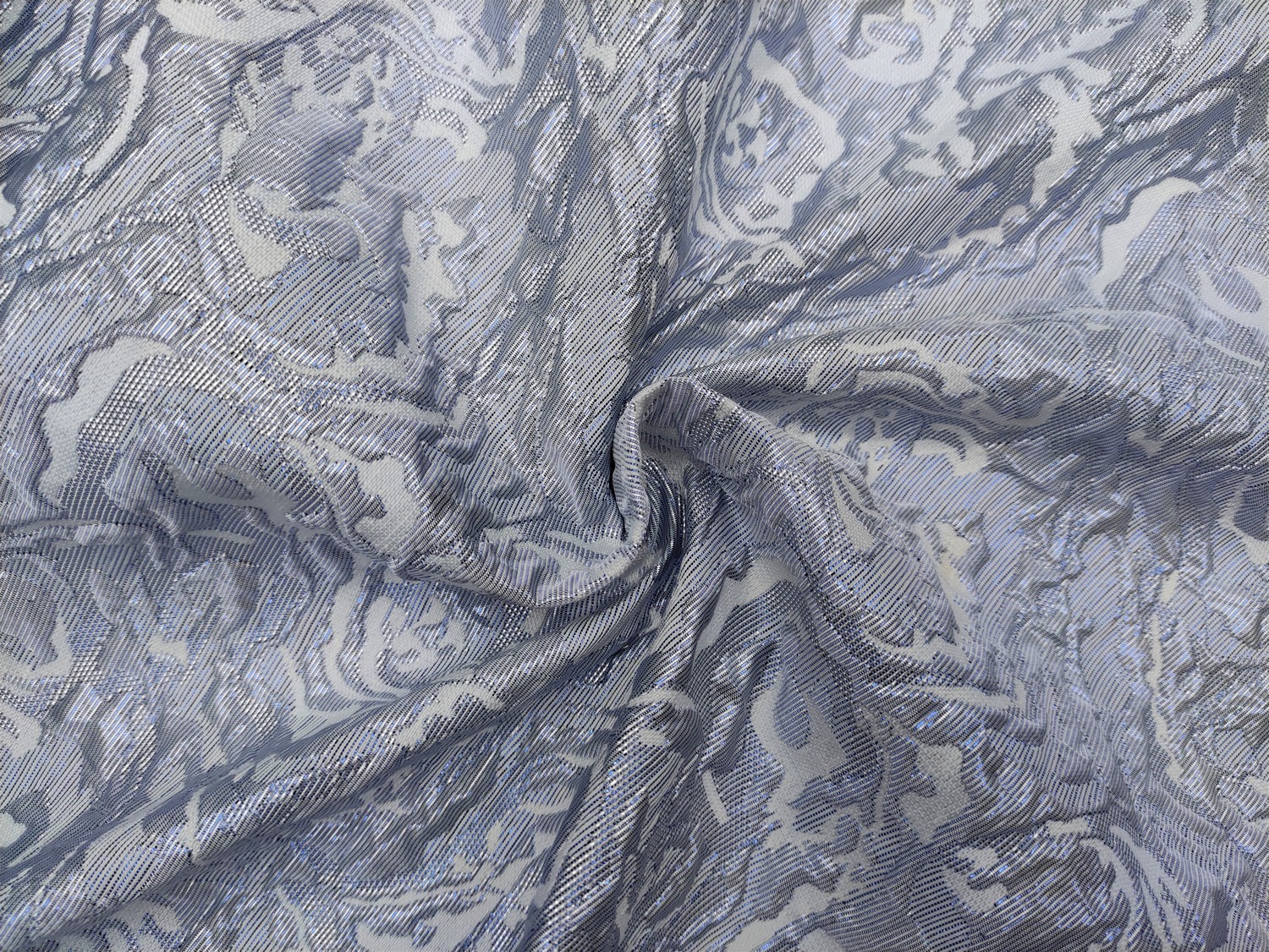 Tessuto Broccato in seta motivo astratto celeste – argento