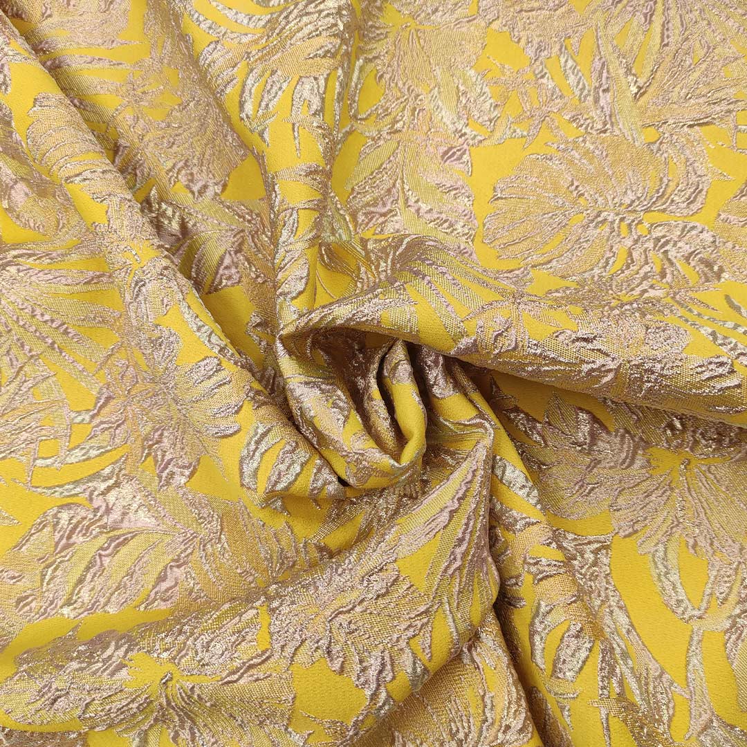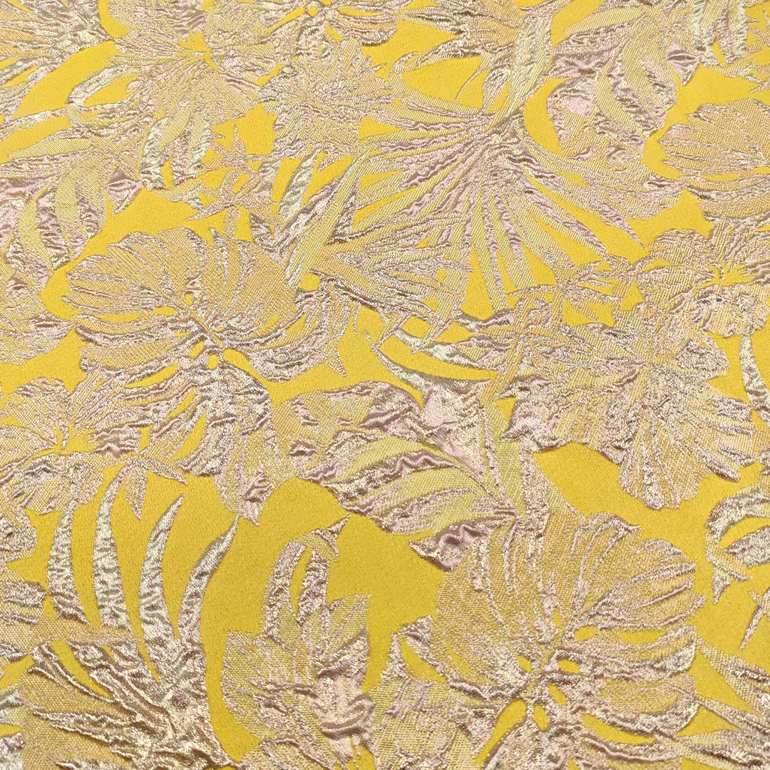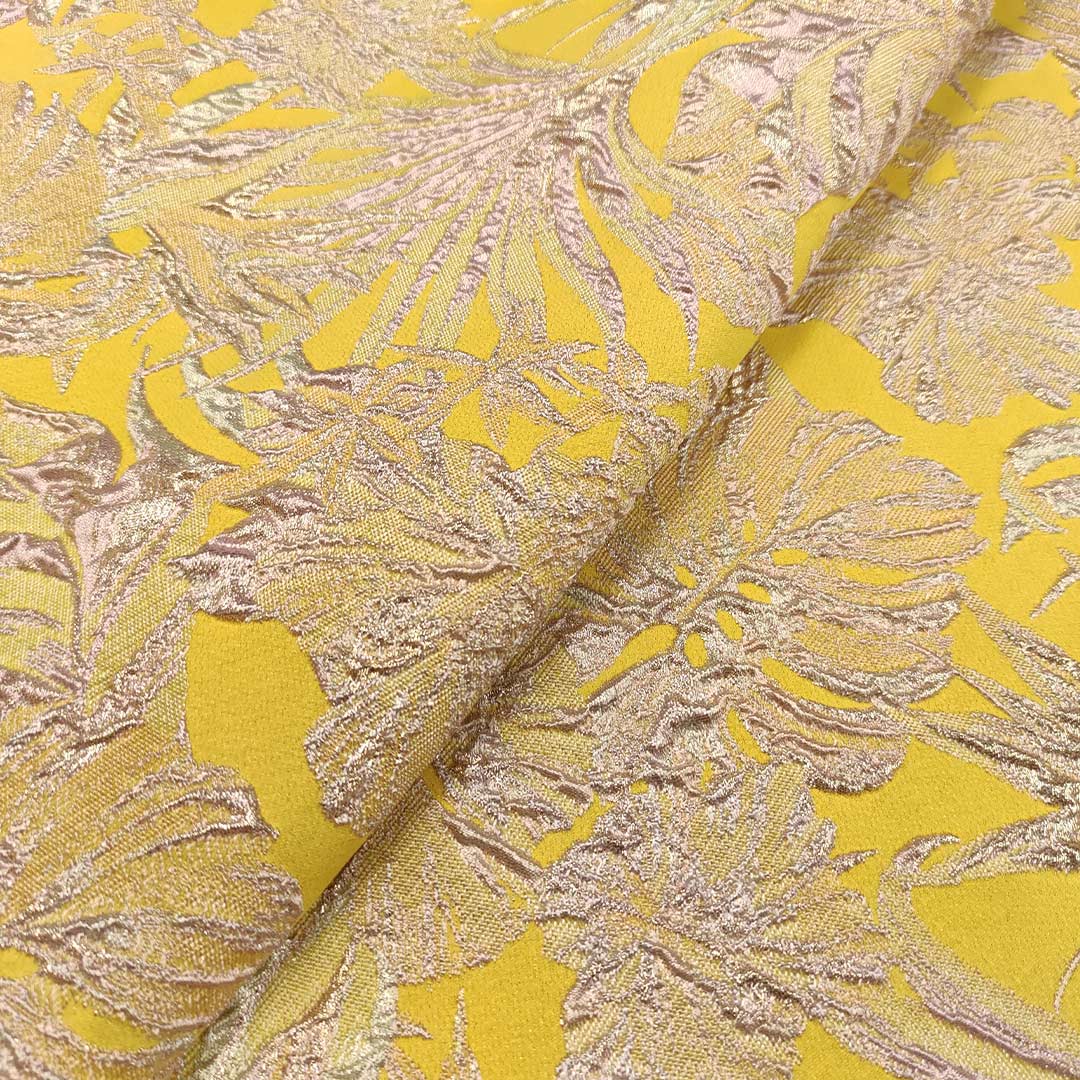 Tessuto Broccato in seta motivo astratto giallo – glicine – oro