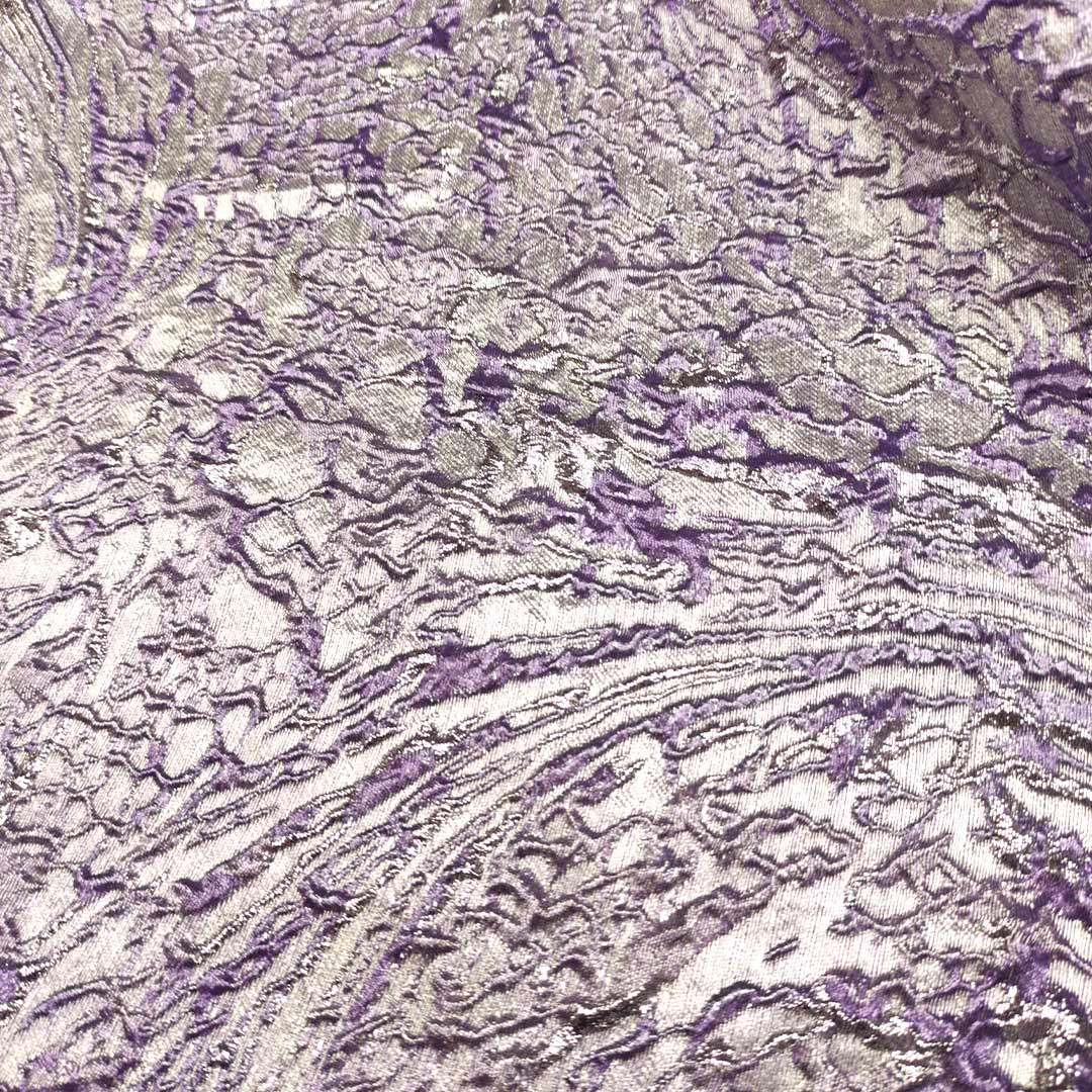 Tessuto Broccato in seta motivo astratto lilla – argento