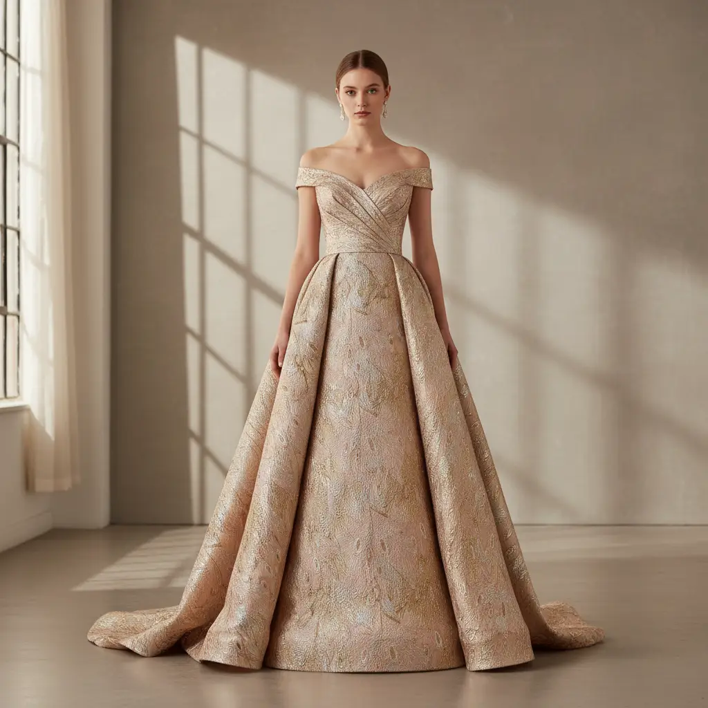 Tessuto Broccato in seta ideale per realizzare capi eleganti e strutturati, si presta alla creazione di abiti ampi, giacche e gonne.