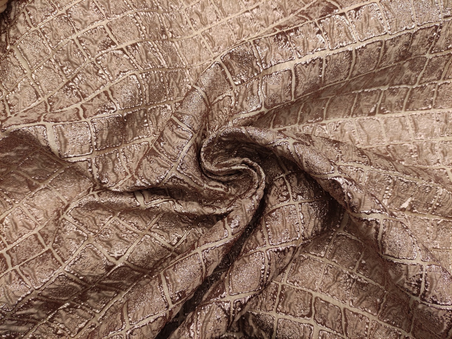 Tessuto Broccato in seta motivo astratto oro – rosa gold