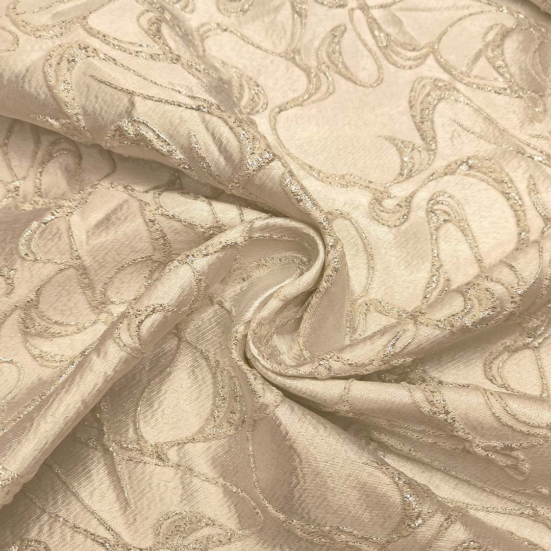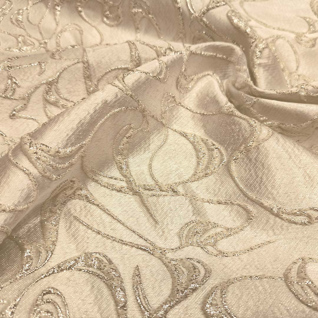 Tessuto Broccato in seta ideale per realizzare capi eleganti e strutturati, si presta alla creazione di abiti ampi, giacche e gonne.