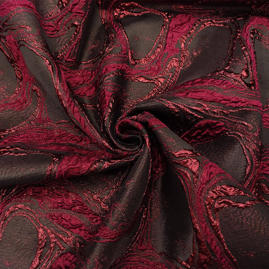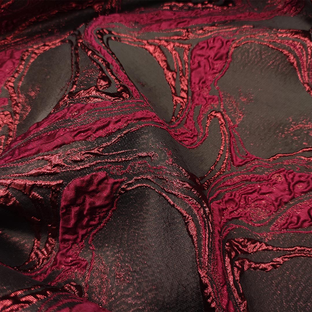 Tessuto Broccato in seta motivo astratto prugna – nero – rame
