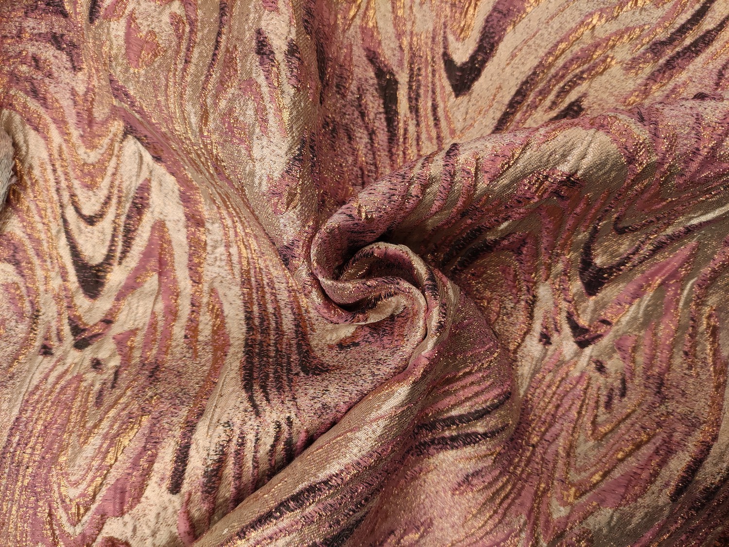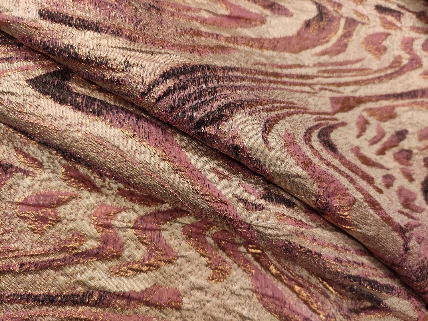 Tessuto Broccato in seta motivo astratto rosa scuro – bronzo – oro