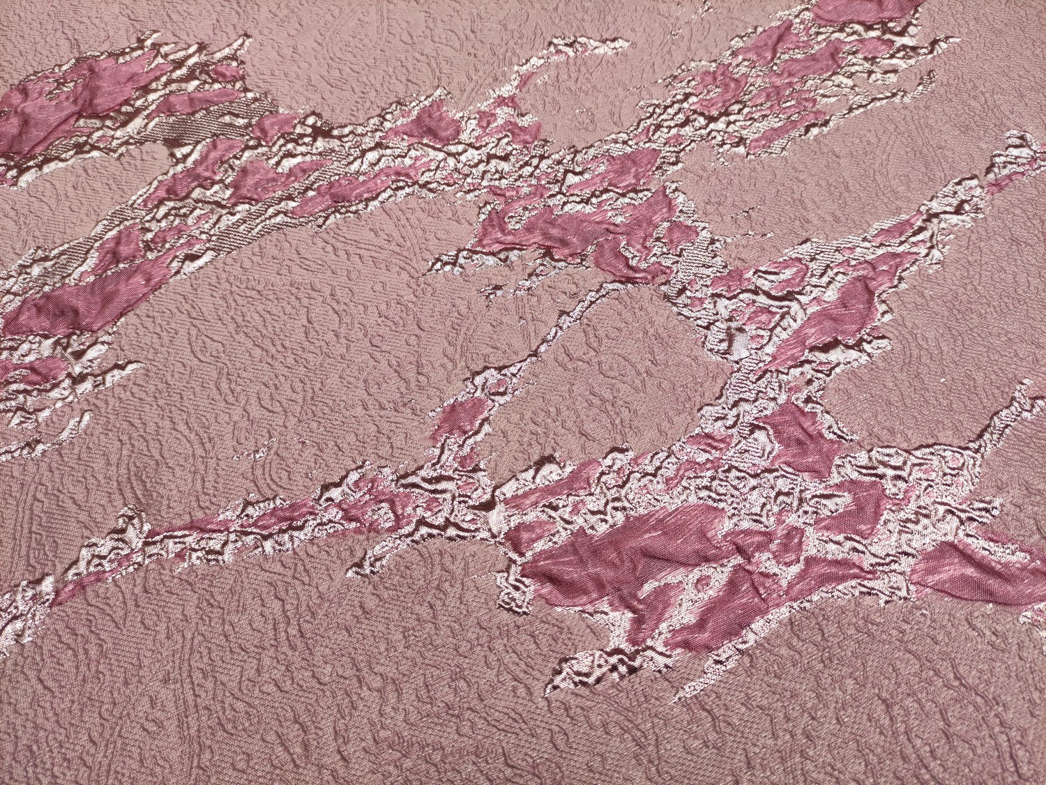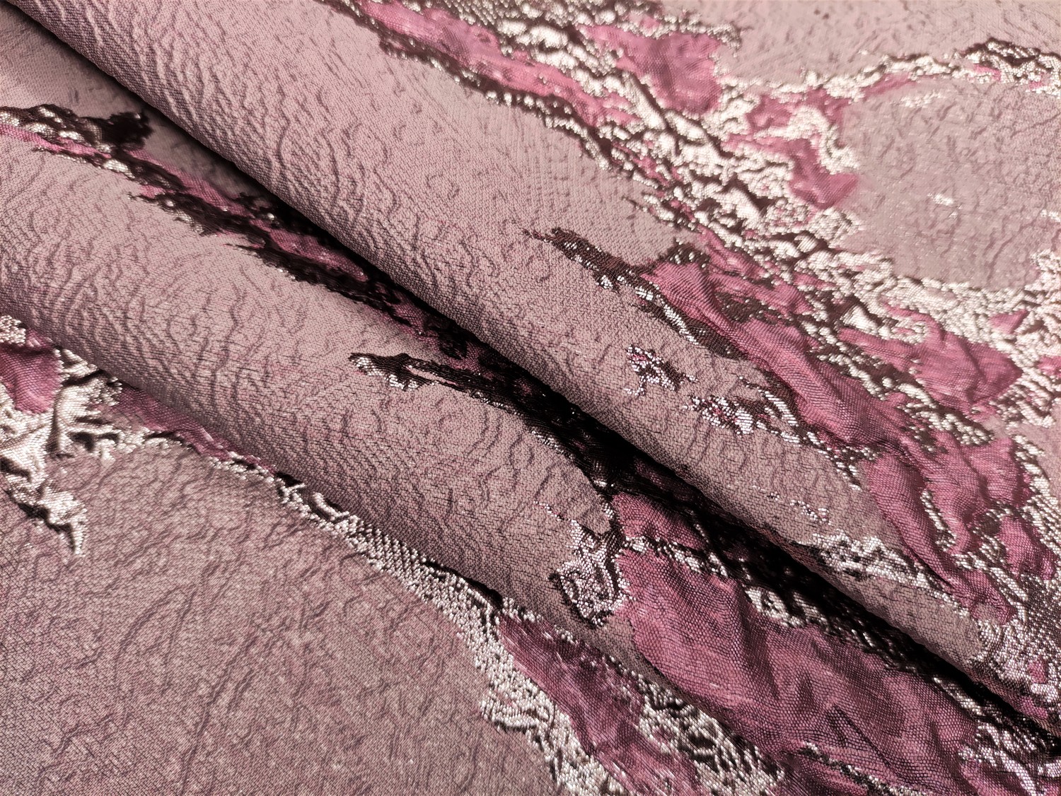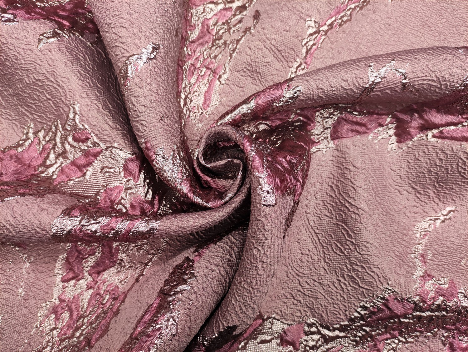 Tessuto Broccato in seta motivo astratto rosa scuro – oro