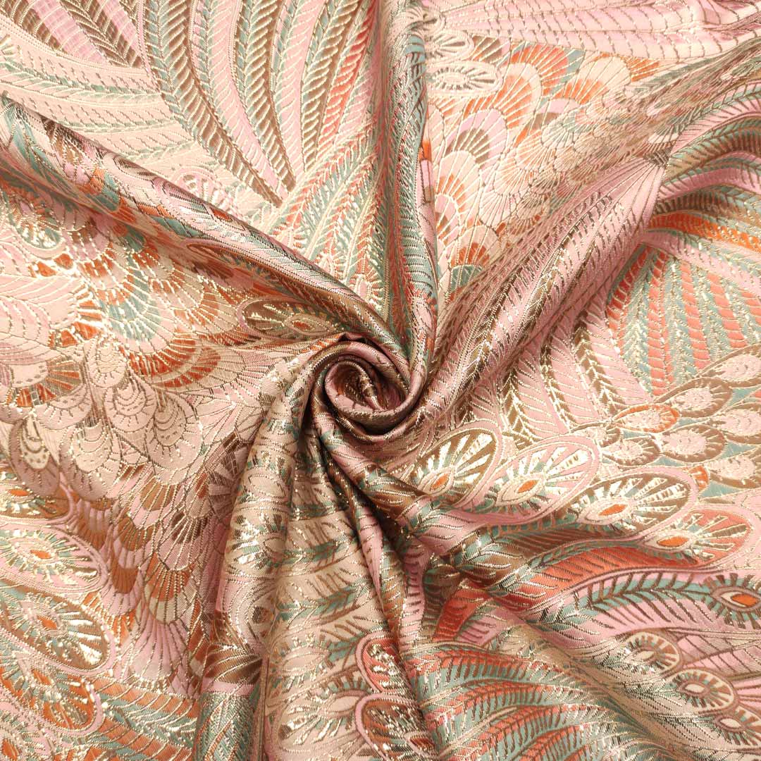 Tessuto Broccato in seta motivo astratto rosa – tiffany – oro