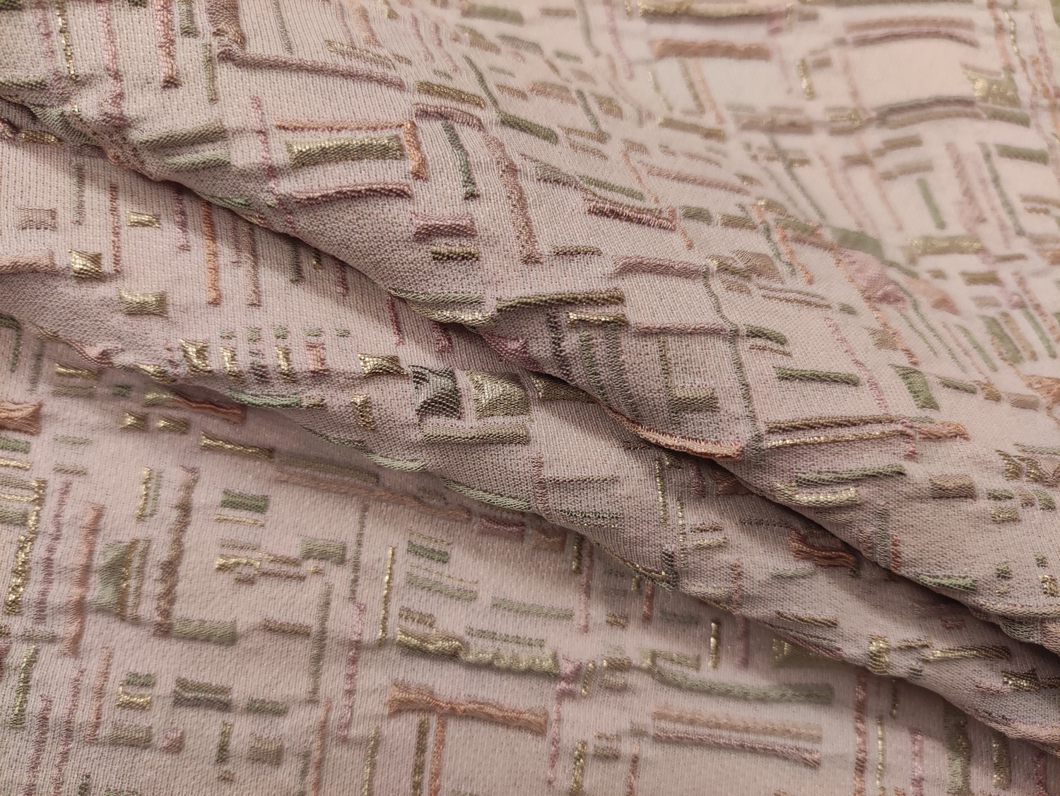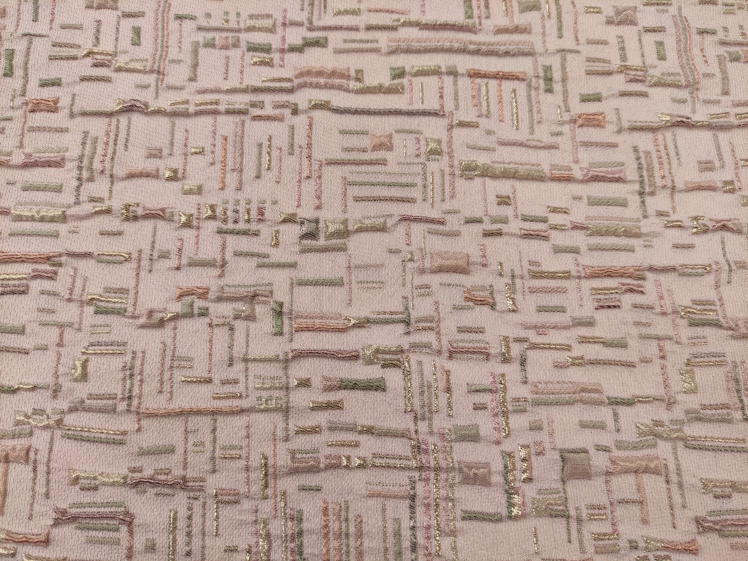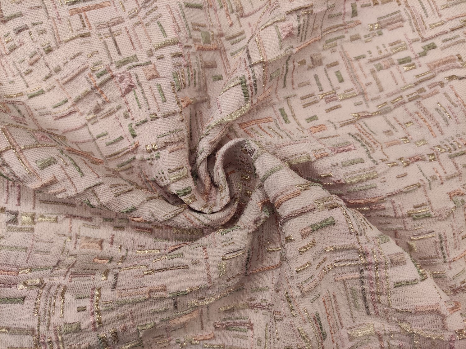 Tessuto Broccato in seta motivo astratto rosa – verde salvia – pesca