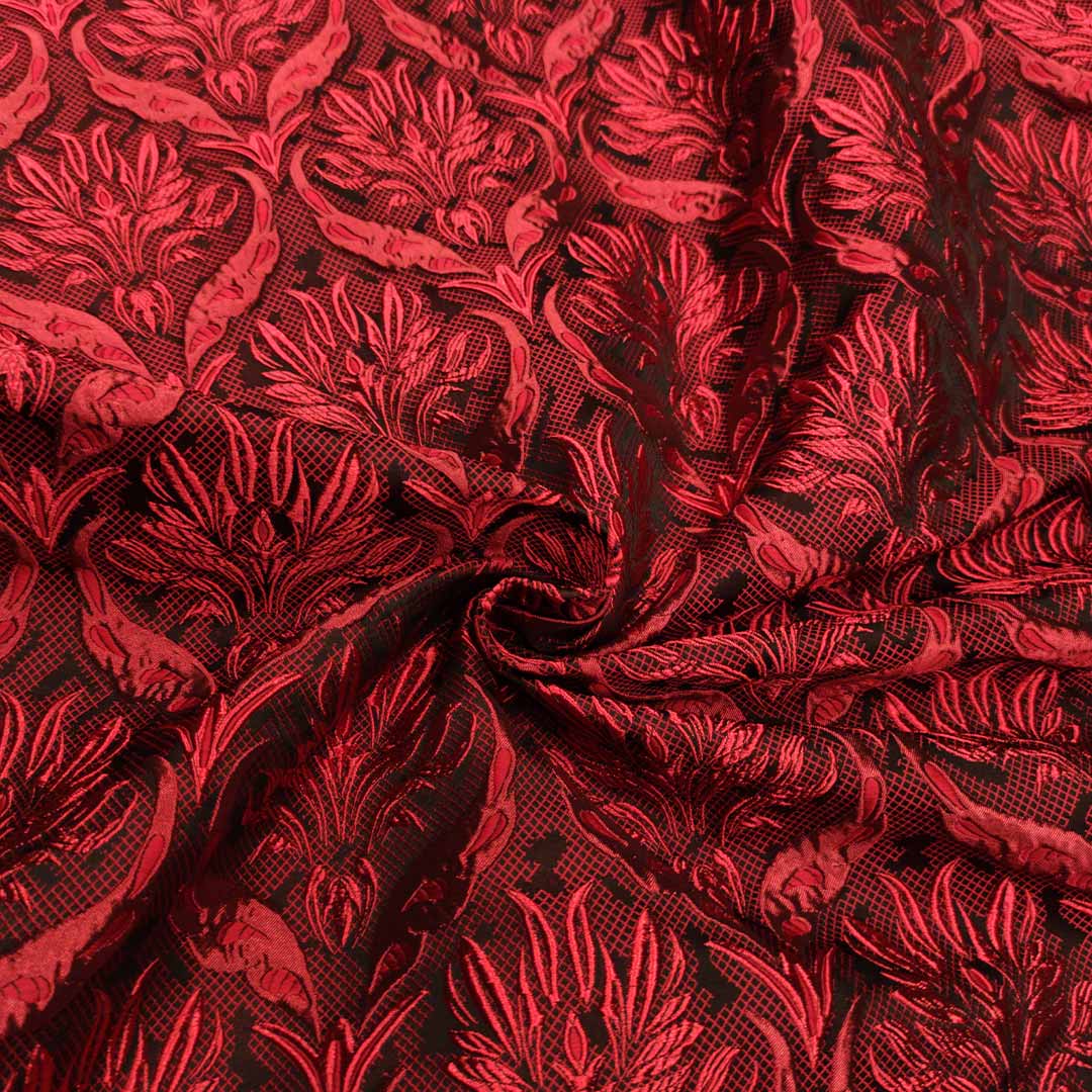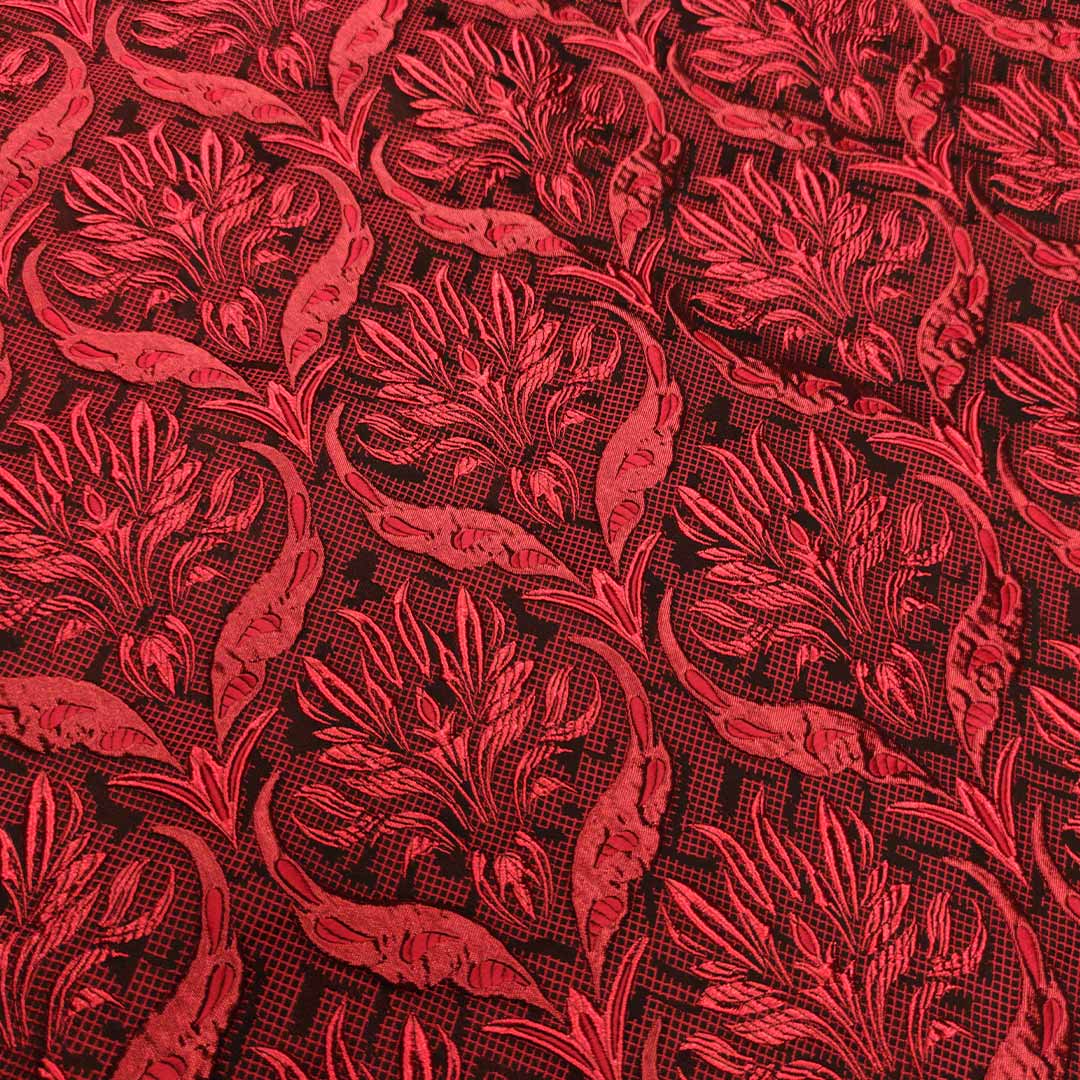 Tessuto Broccato in seta motivo astratto rosso – nero