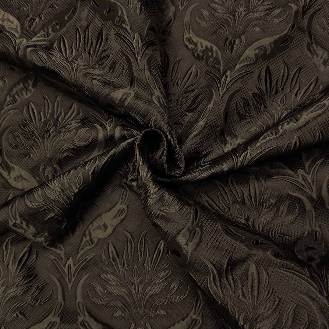 Tessuto Broccato in seta motivo astratto tinta unita nero