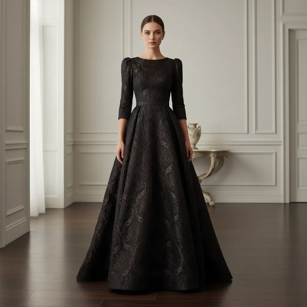 Tessuto Broccato in seta ideale per realizzare capi eleganti e strutturati, si presta alla creazione di abiti ampi, giacche e gonne.