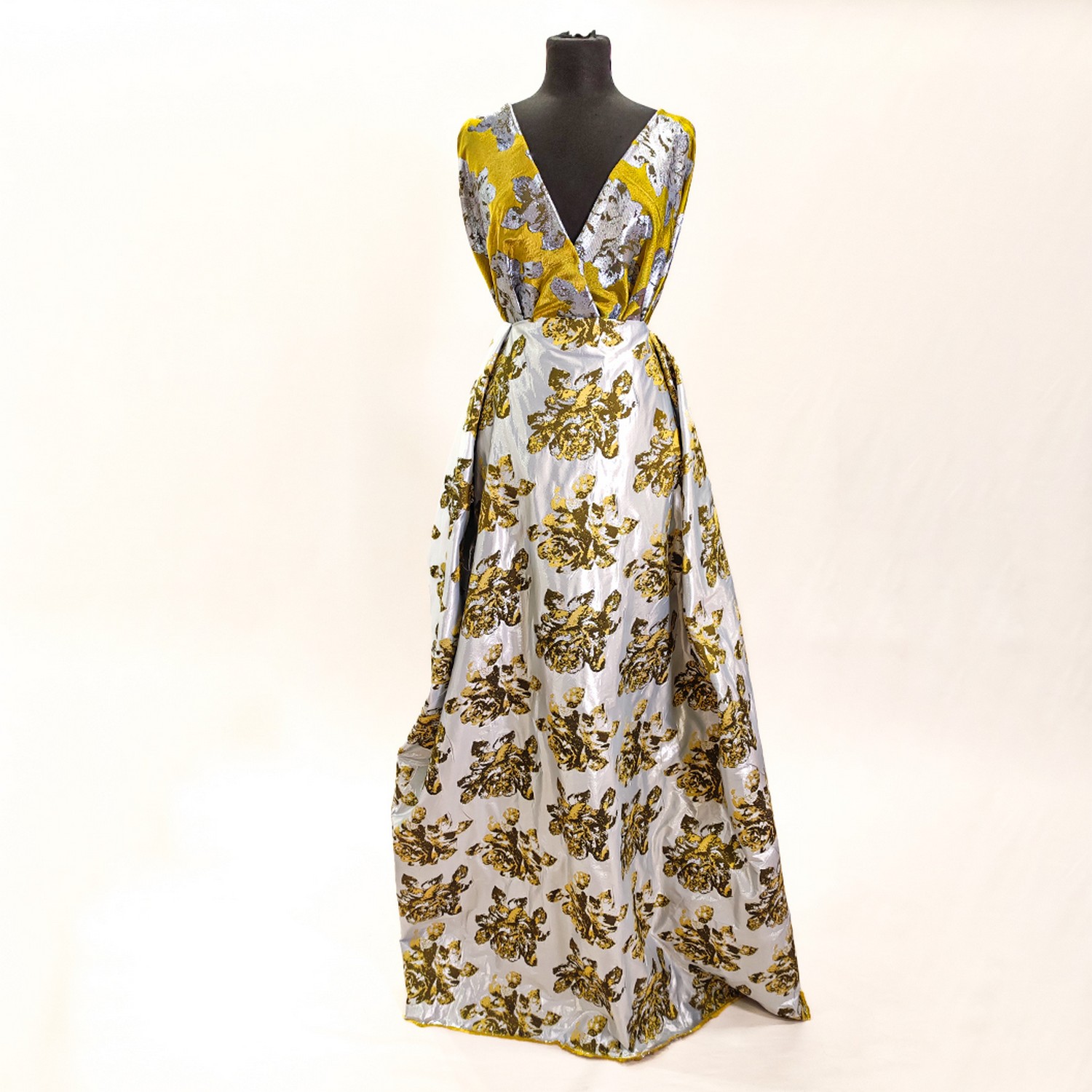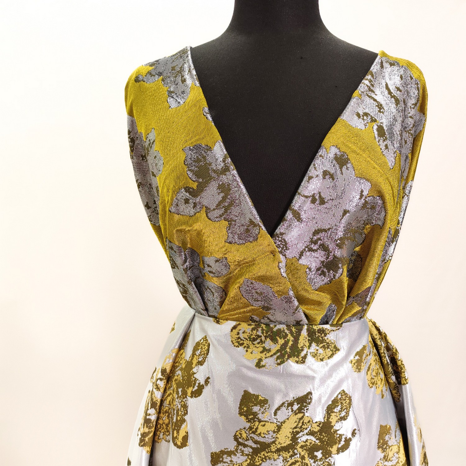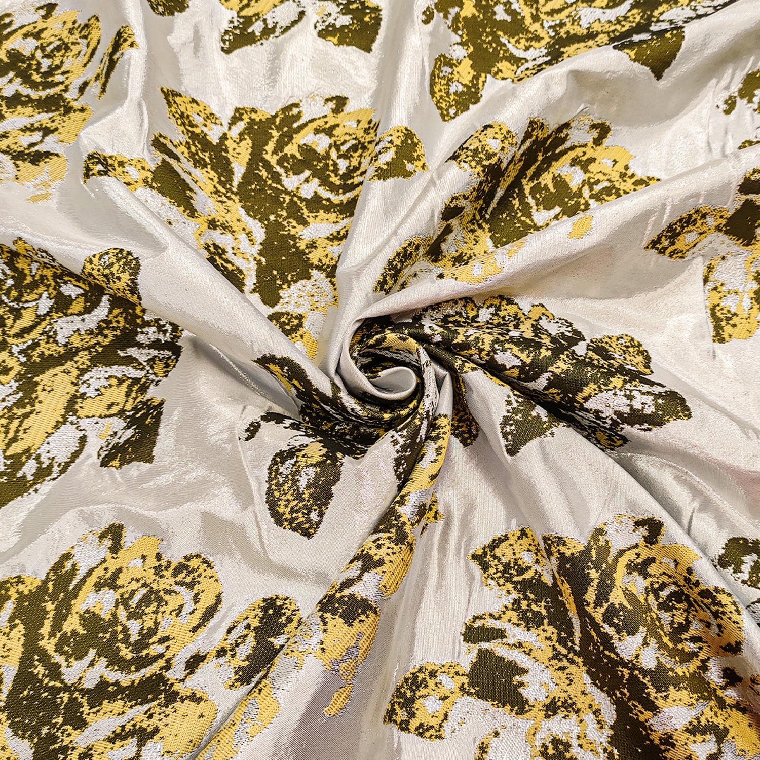 Tessuto Broccato in seta ideale per realizzare capi eleganti e strutturati, si presta alla creazione di abiti ampi, giacche e gonne.