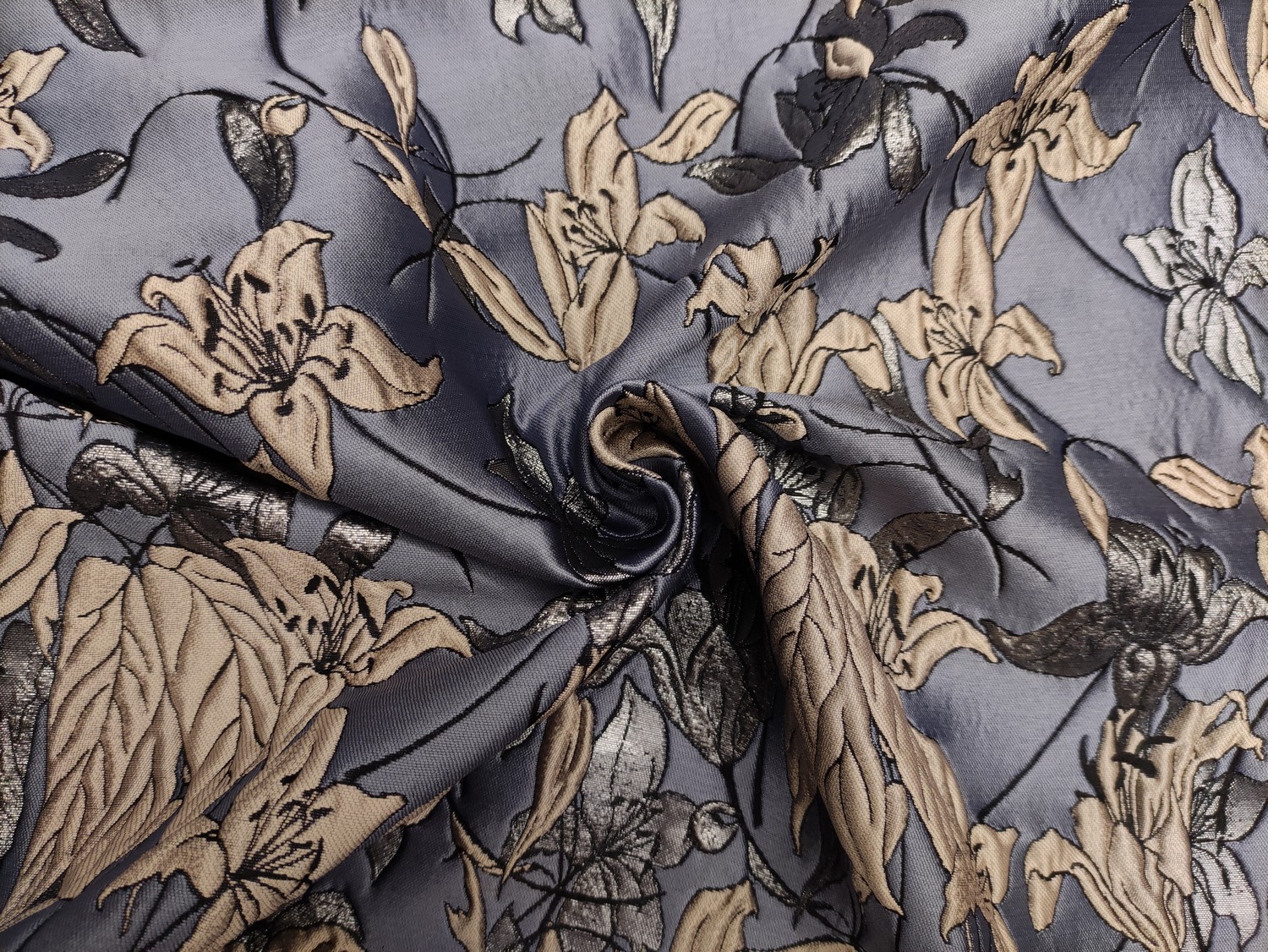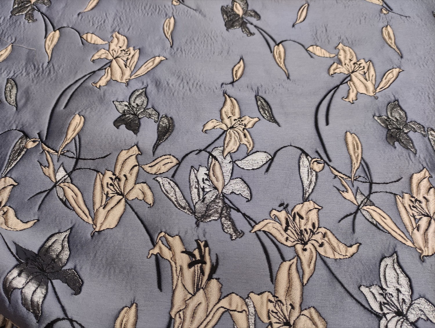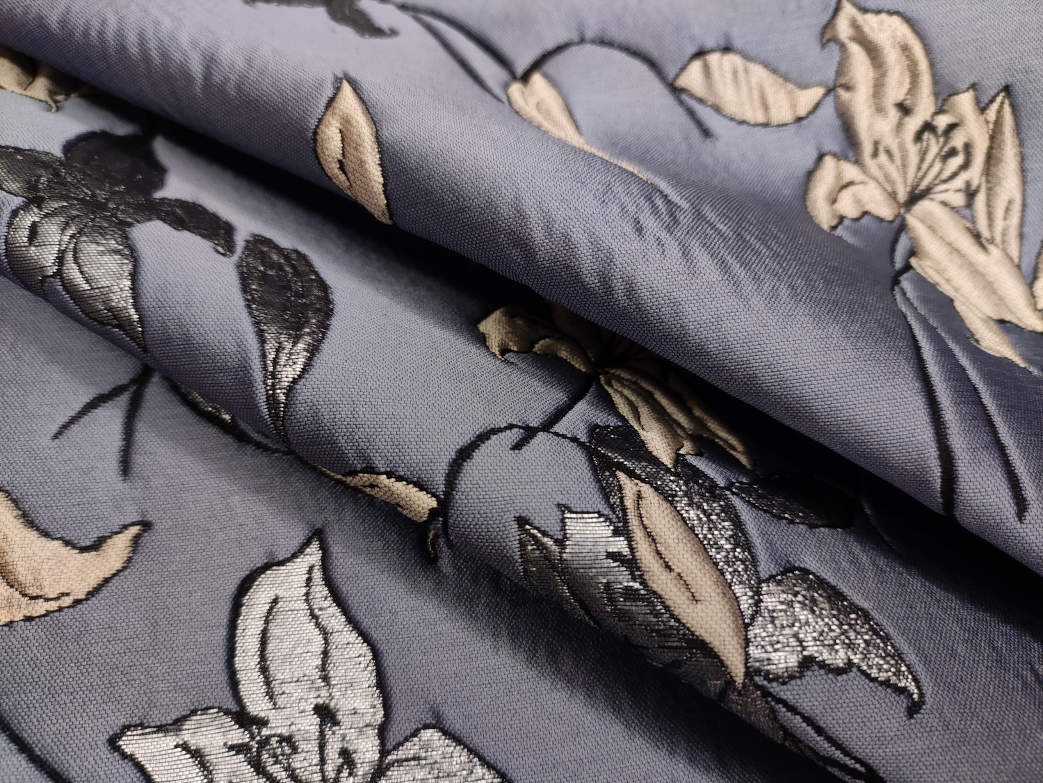 Tessuto Broccato in seta motivo floreale avio – argento