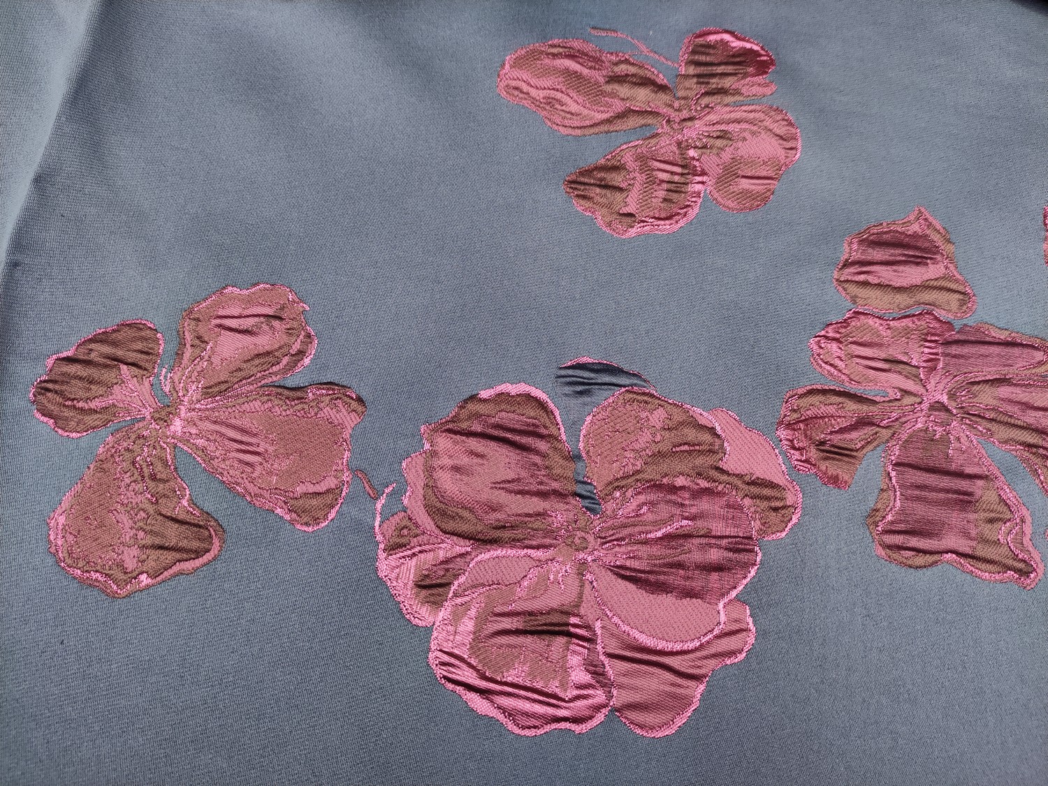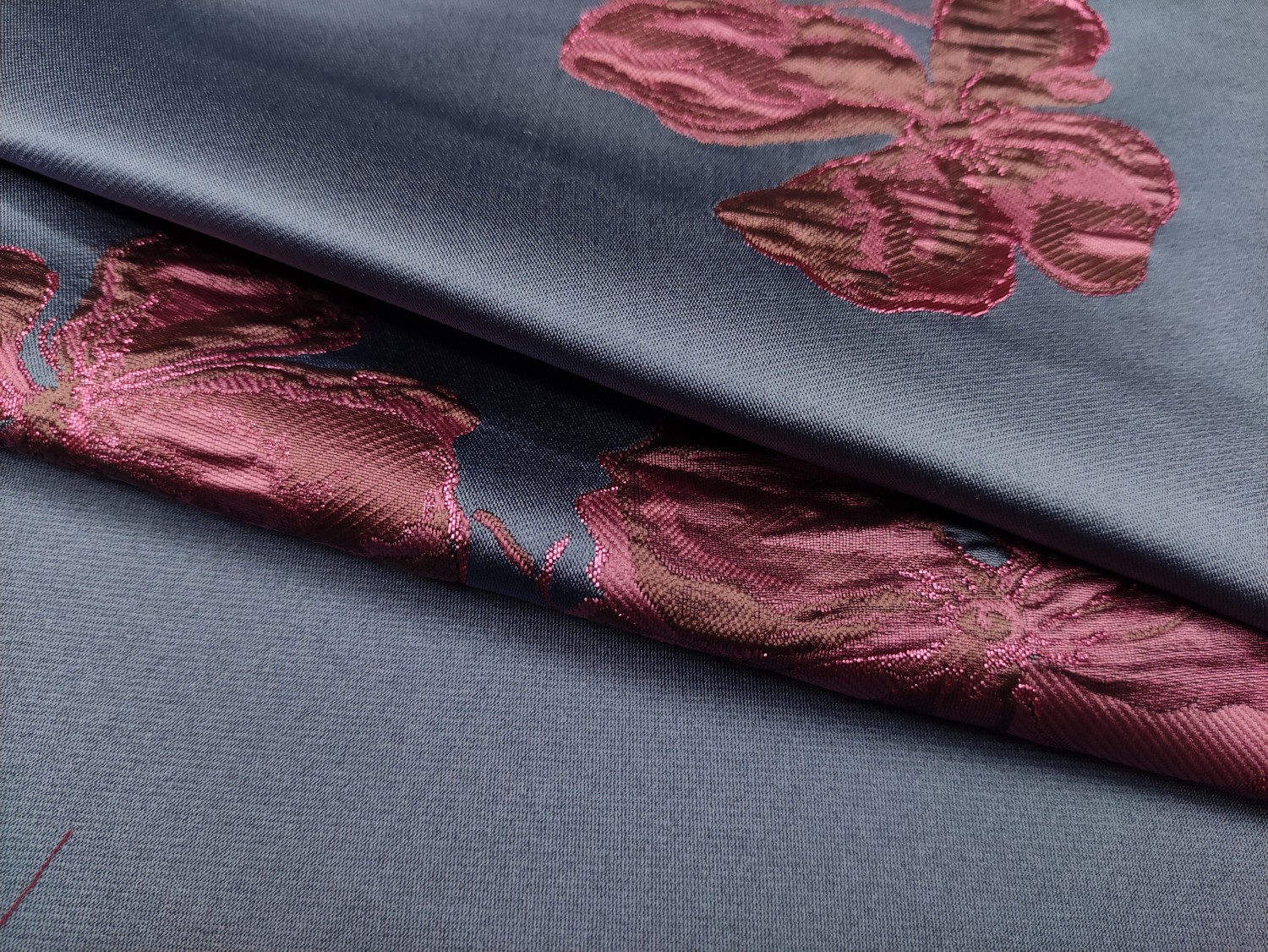 Tessuto Broccato in seta motivo floreale avio – fucsia scuro