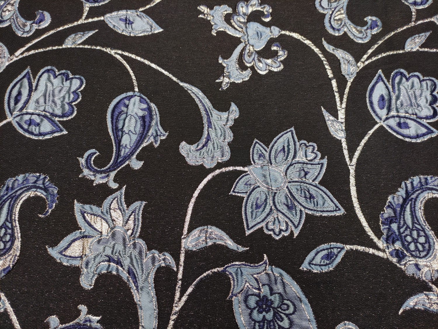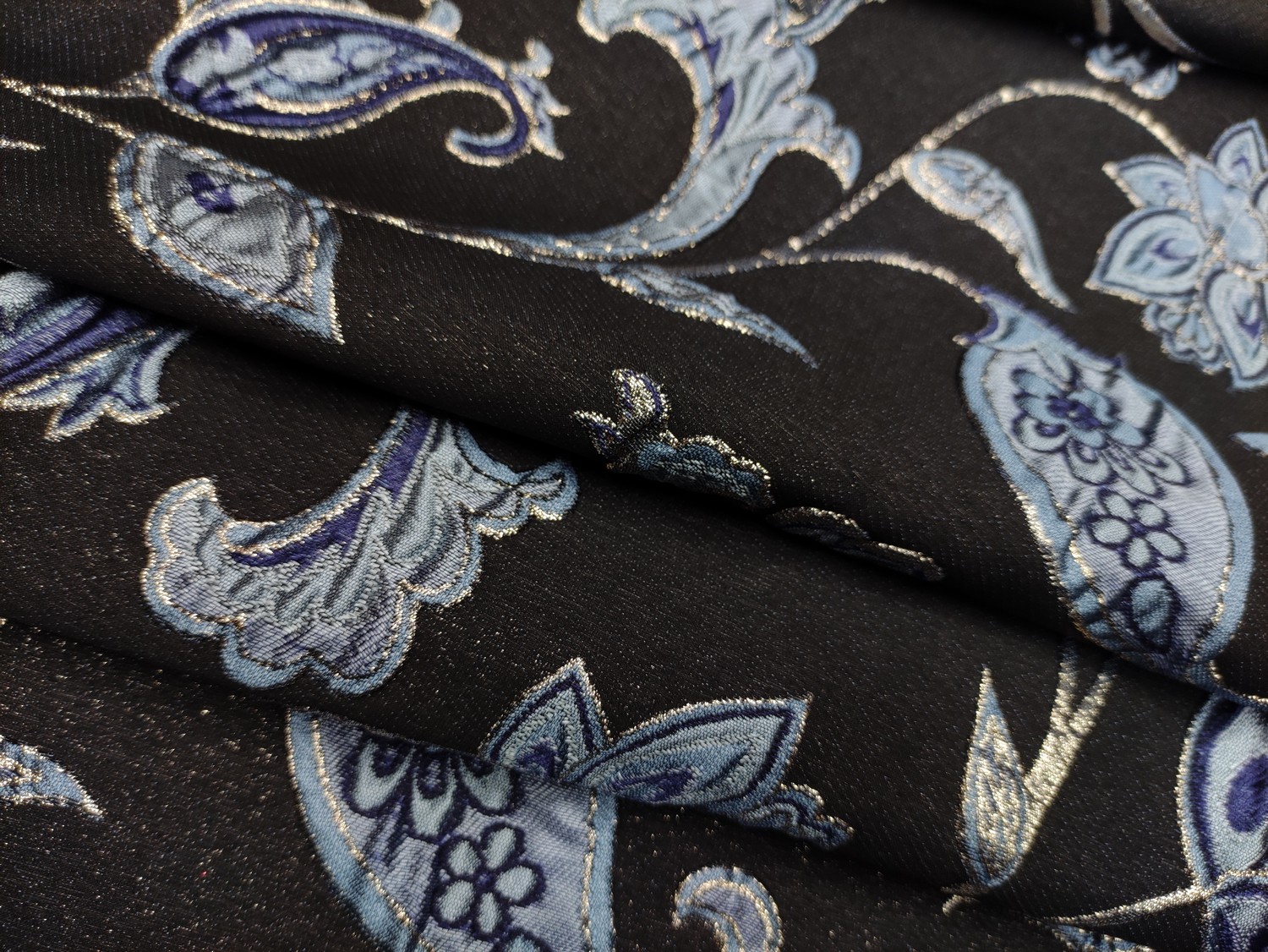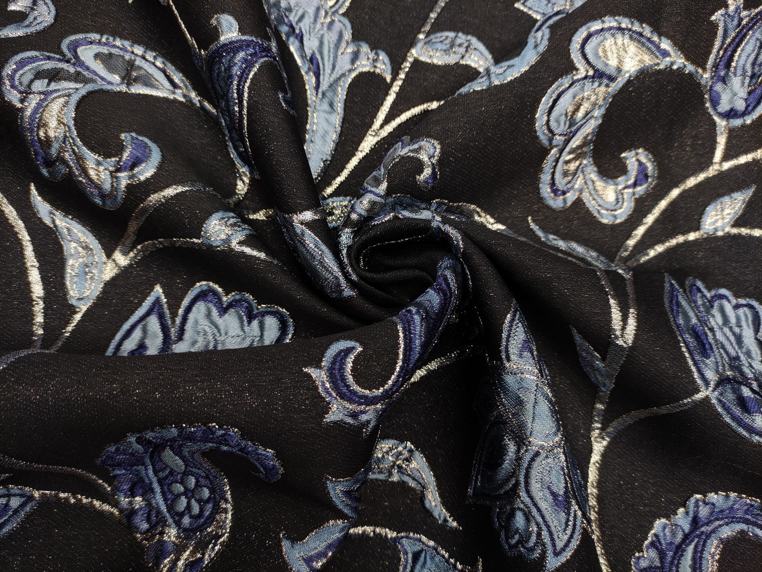 Tessuto Broccato in seta motivo floreale barocco nero – carta da zucchero – oro