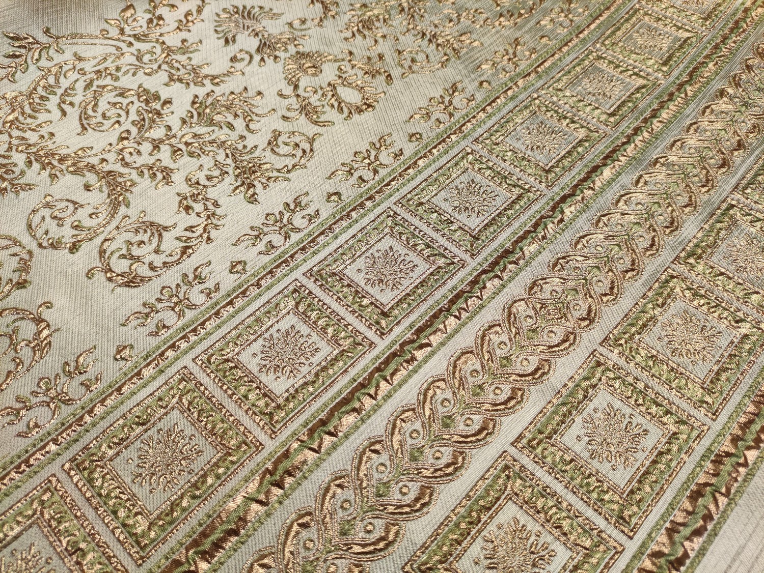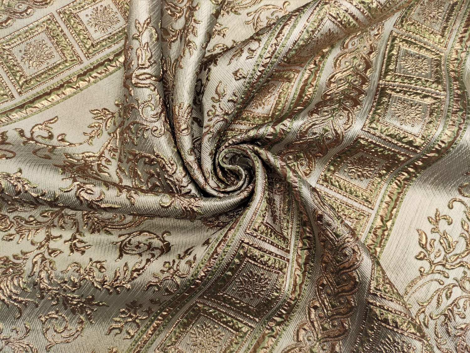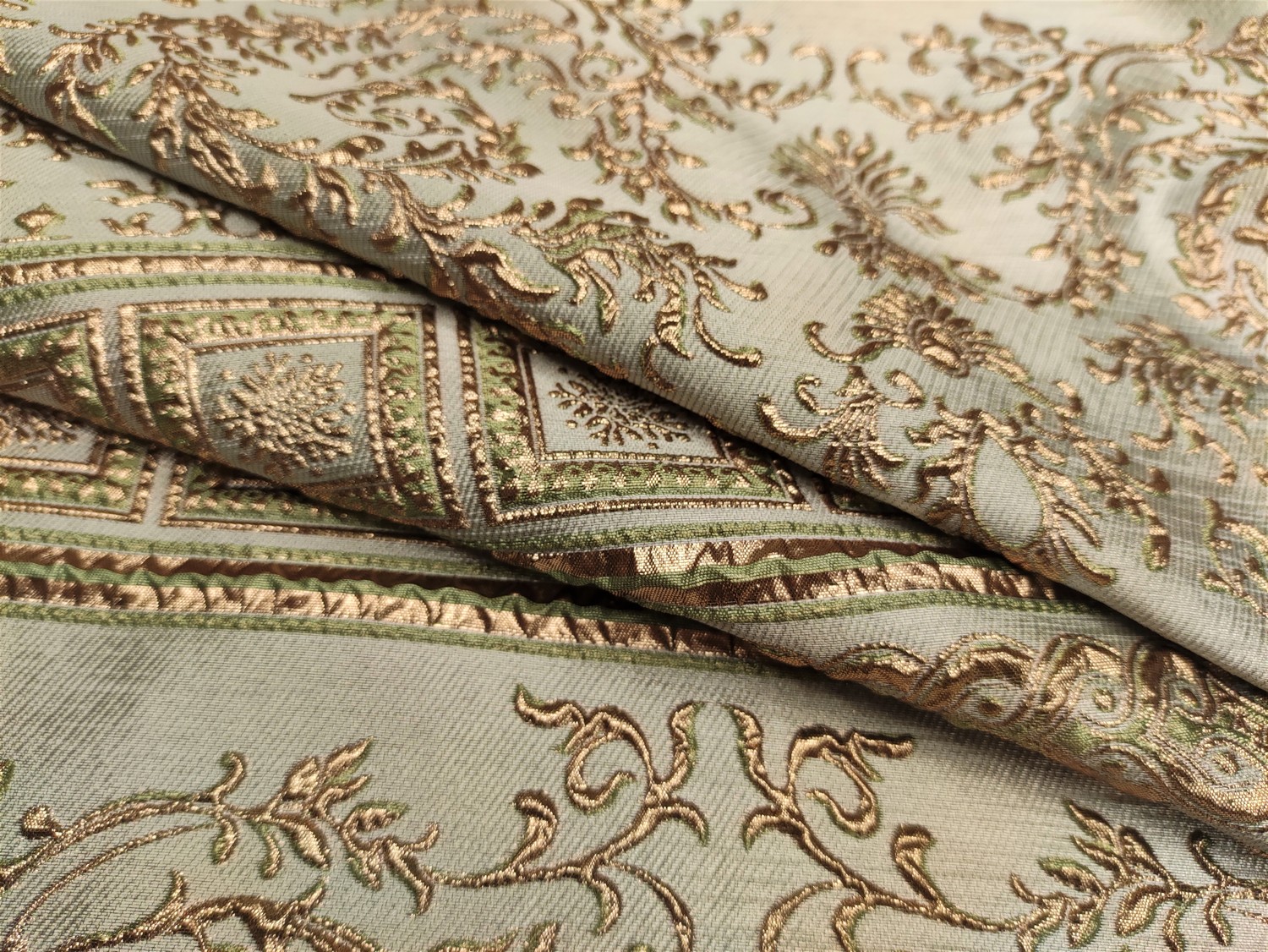 Tessuto Broccato in seta motivo floreale barocco verde salvia – oro