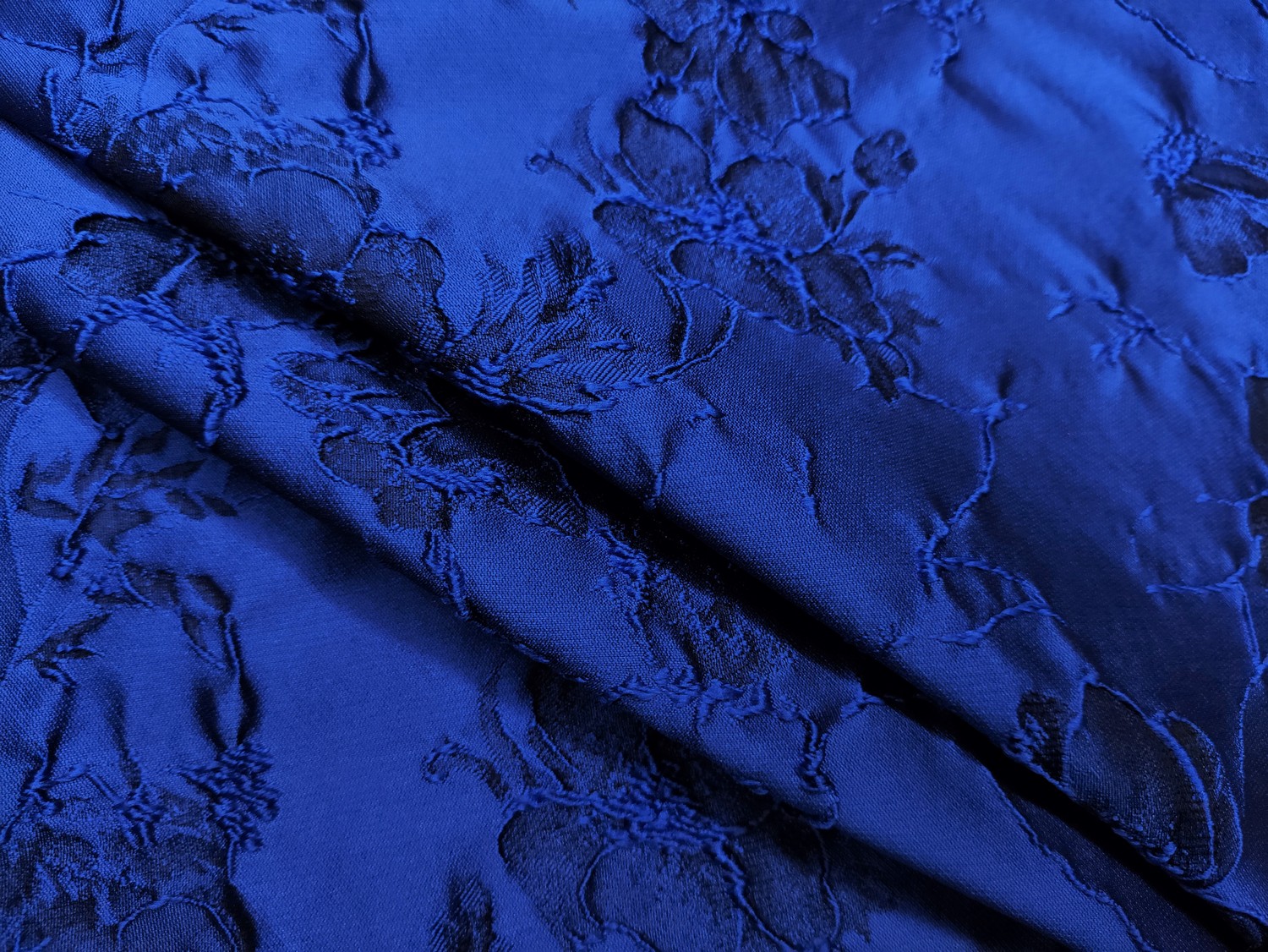 Tessuto Broccato in seta motivo floreale blu elettrico 01