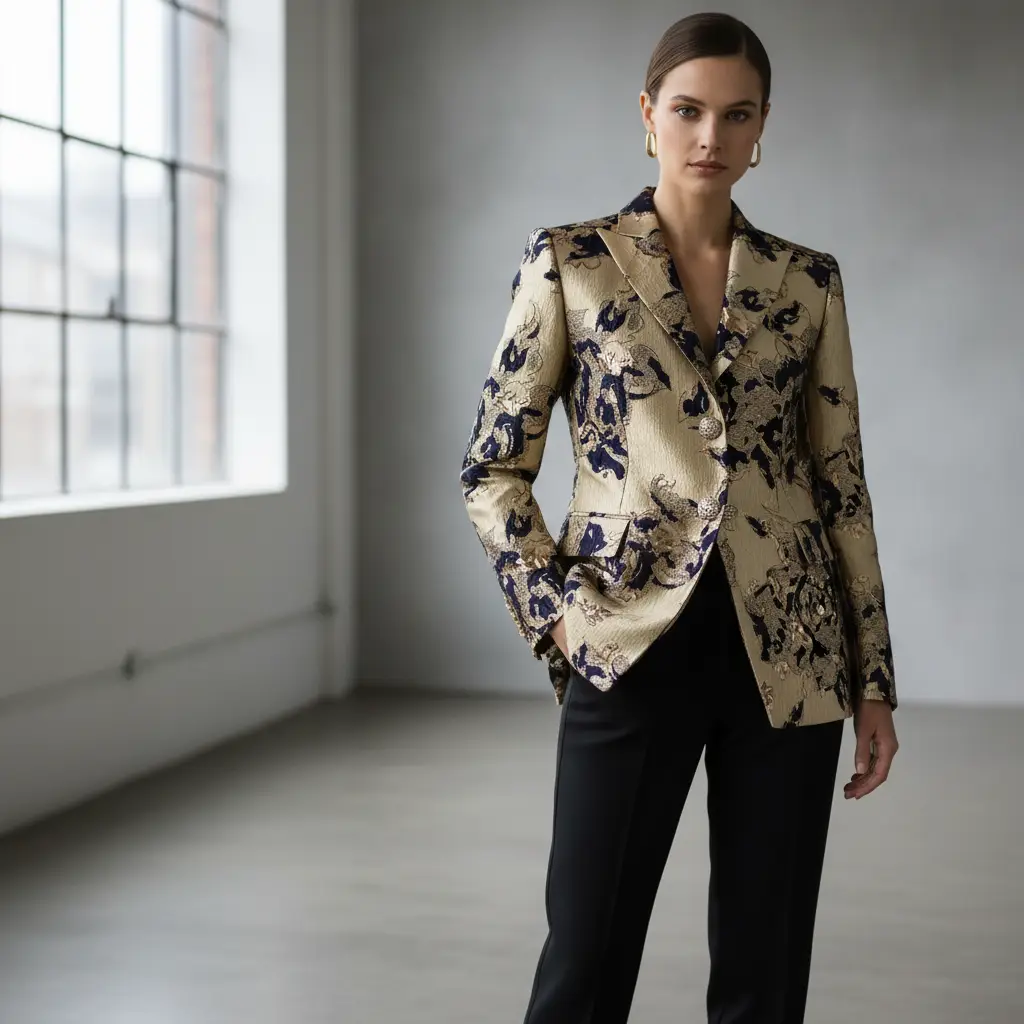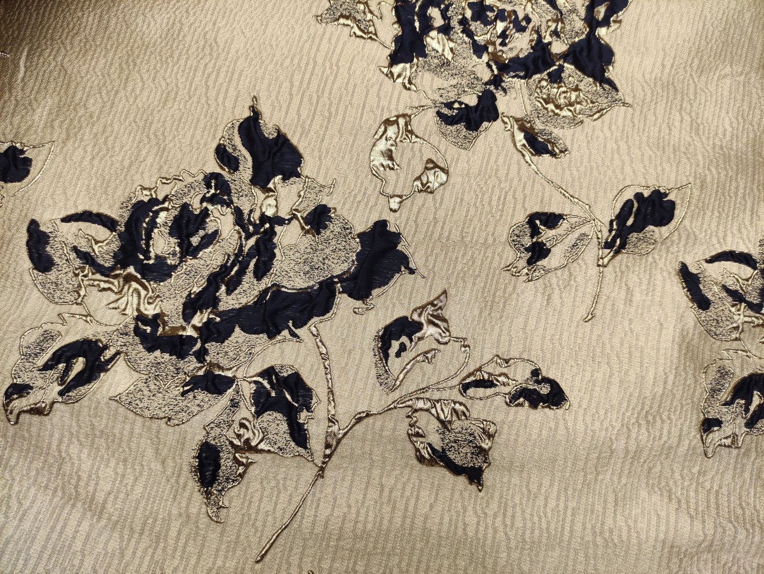 Tessuto Broccato in seta ideale per realizzare capi eleganti e strutturati, si presta alla creazione di abiti ampi, giacche e gonne.