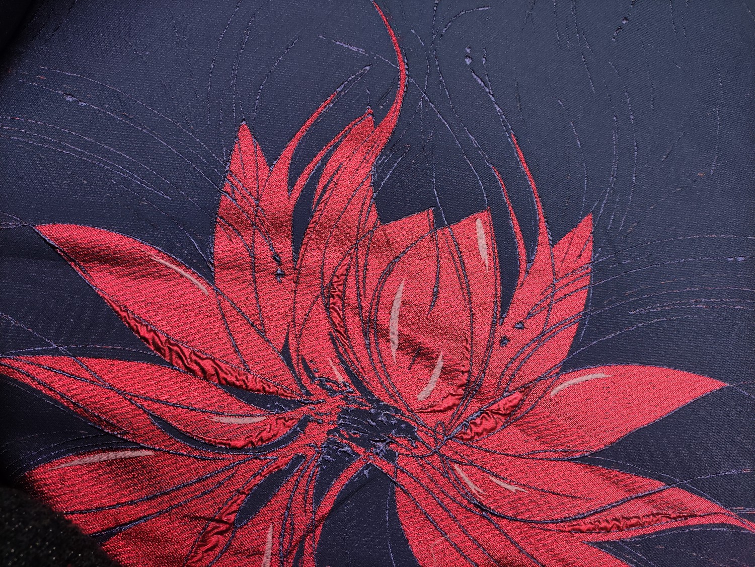 Tessuto Broccato in seta motivo floreale blu-rosso