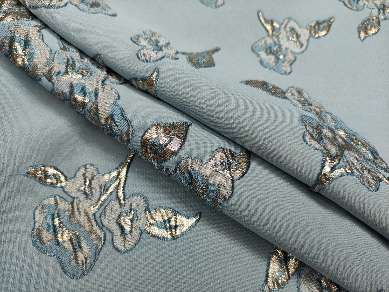 Tessuto Broccato in seta ideale per realizzare capi eleganti e strutturati, si presta alla creazione di abiti ampi, giacche e gonne.