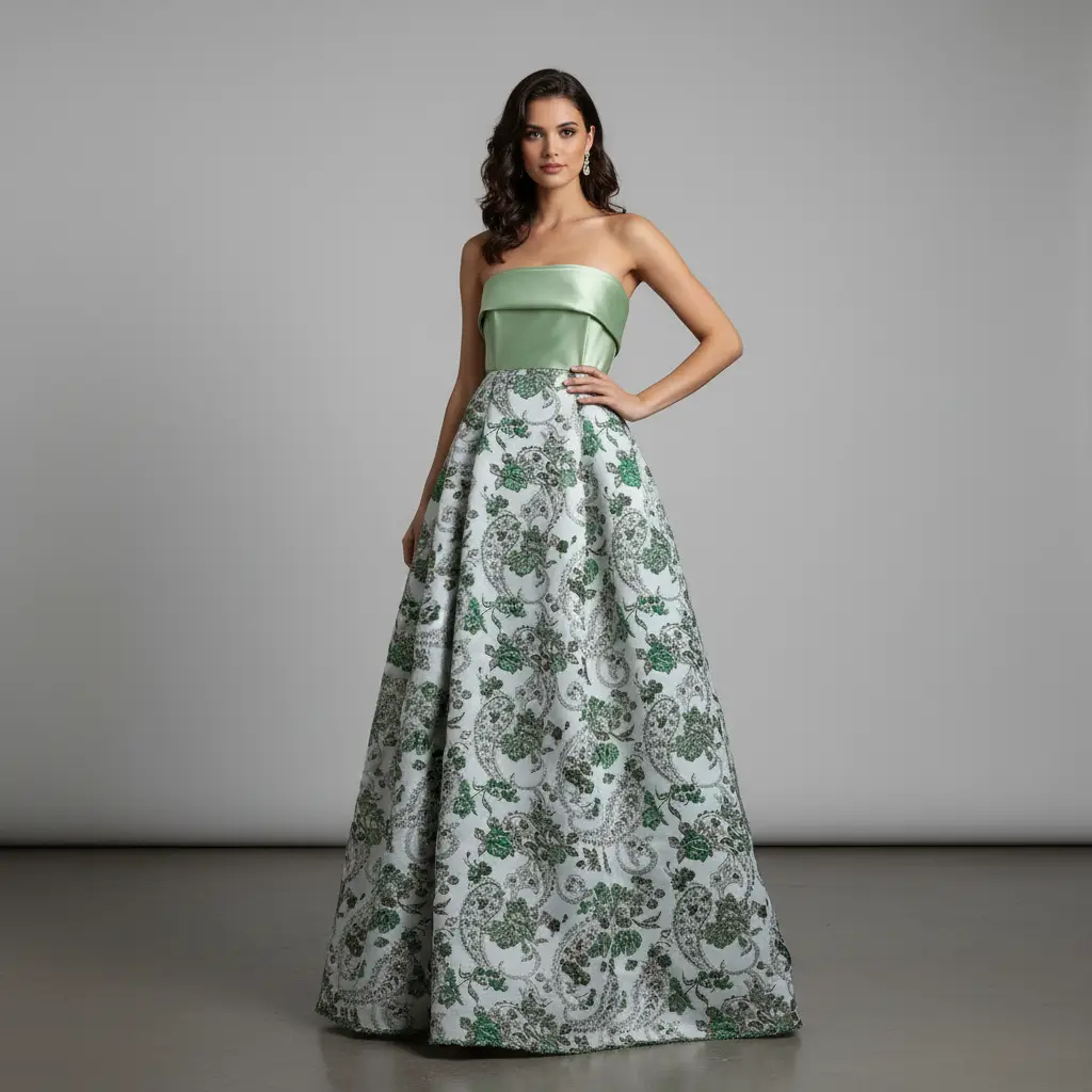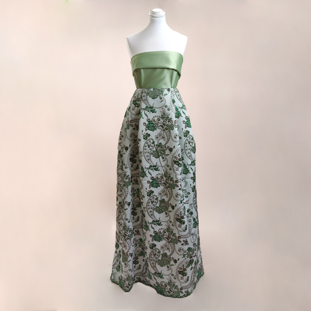 Tessuto Broccato in seta ideale per realizzare capi eleganti e strutturati, si presta alla creazione di abiti ampi, giacche e gonne.