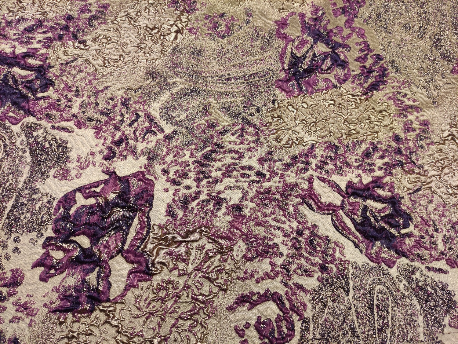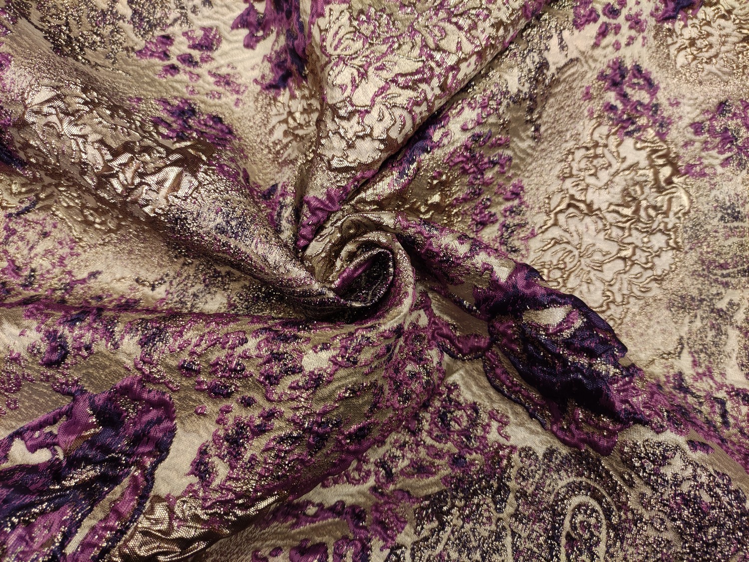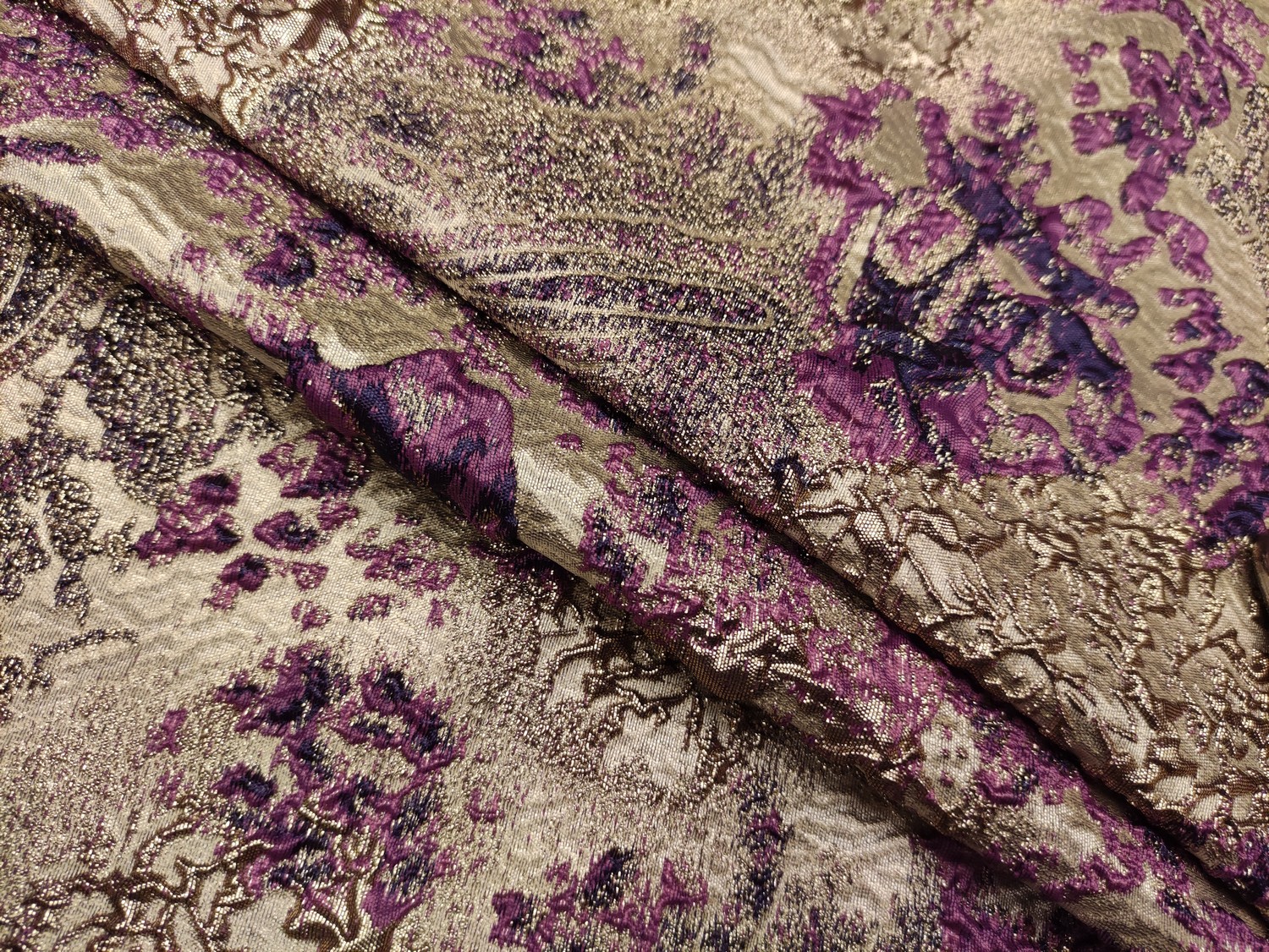 Tessuto Broccato in seta motivo floreale cashmere oro – viola