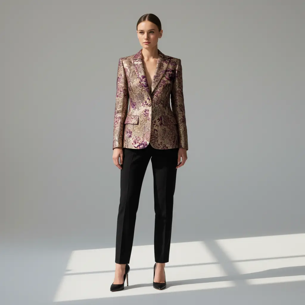 Tessuto Broccato in seta ideale per realizzare capi eleganti e strutturati, si presta alla creazione di abiti ampi, giacche e gonne.