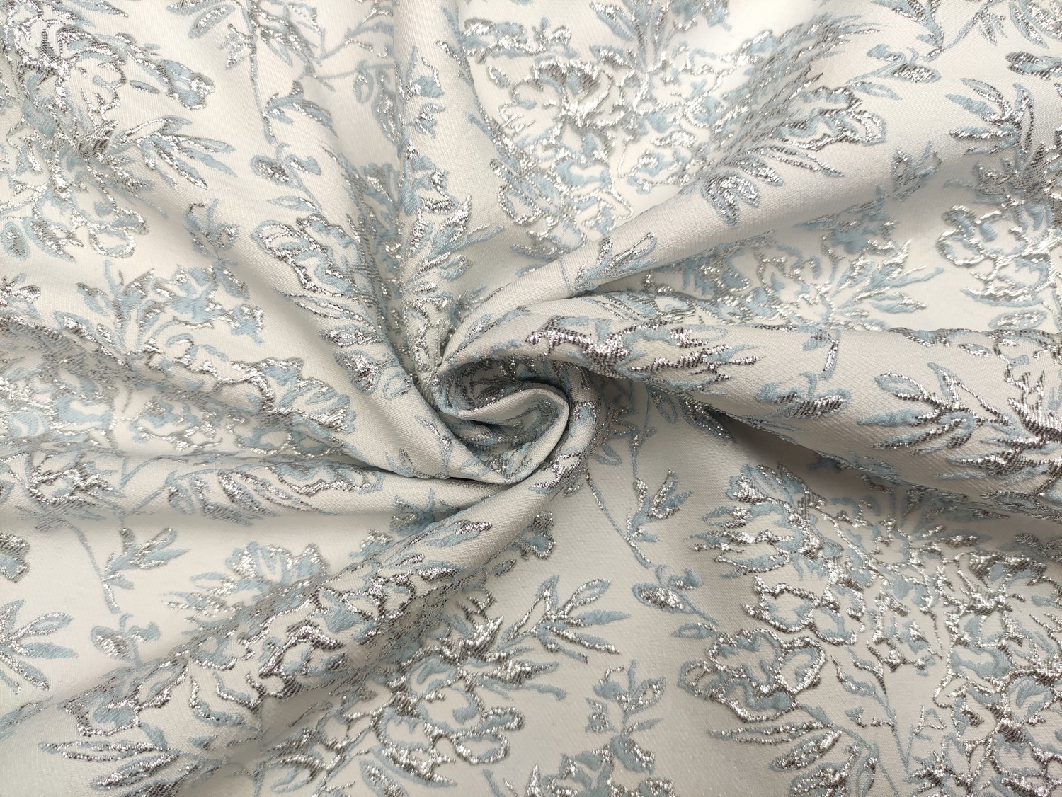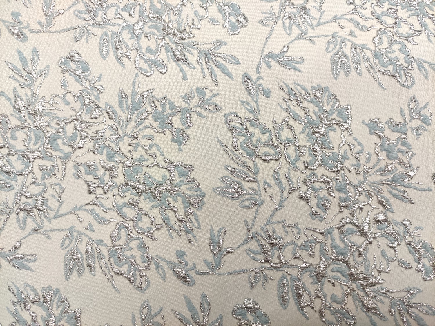 Tessuto Broccato in seta motivo floreale celeste – argento