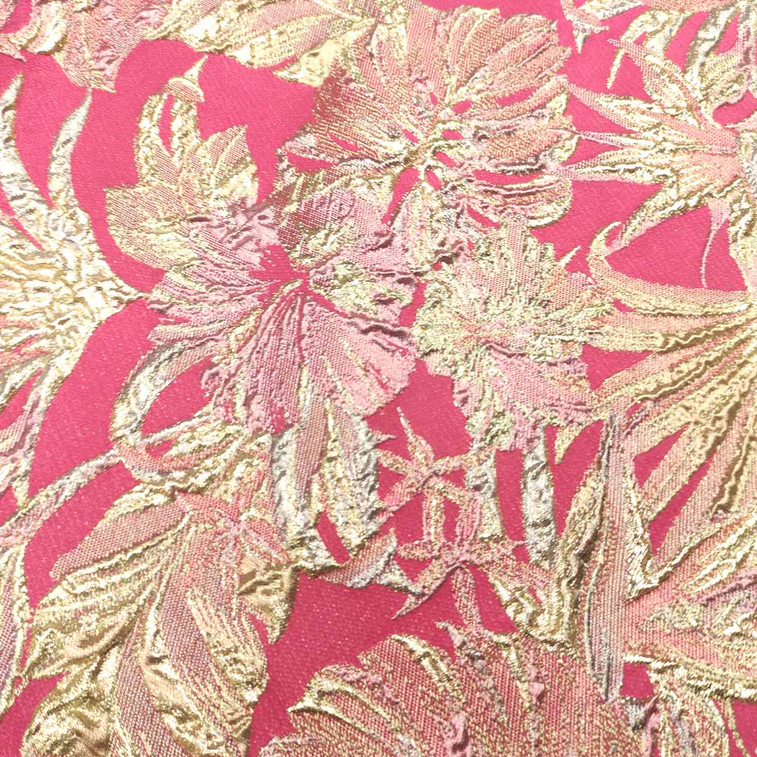 Tessuto Broccato in seta motivo floreale fucsia – lilla – oro