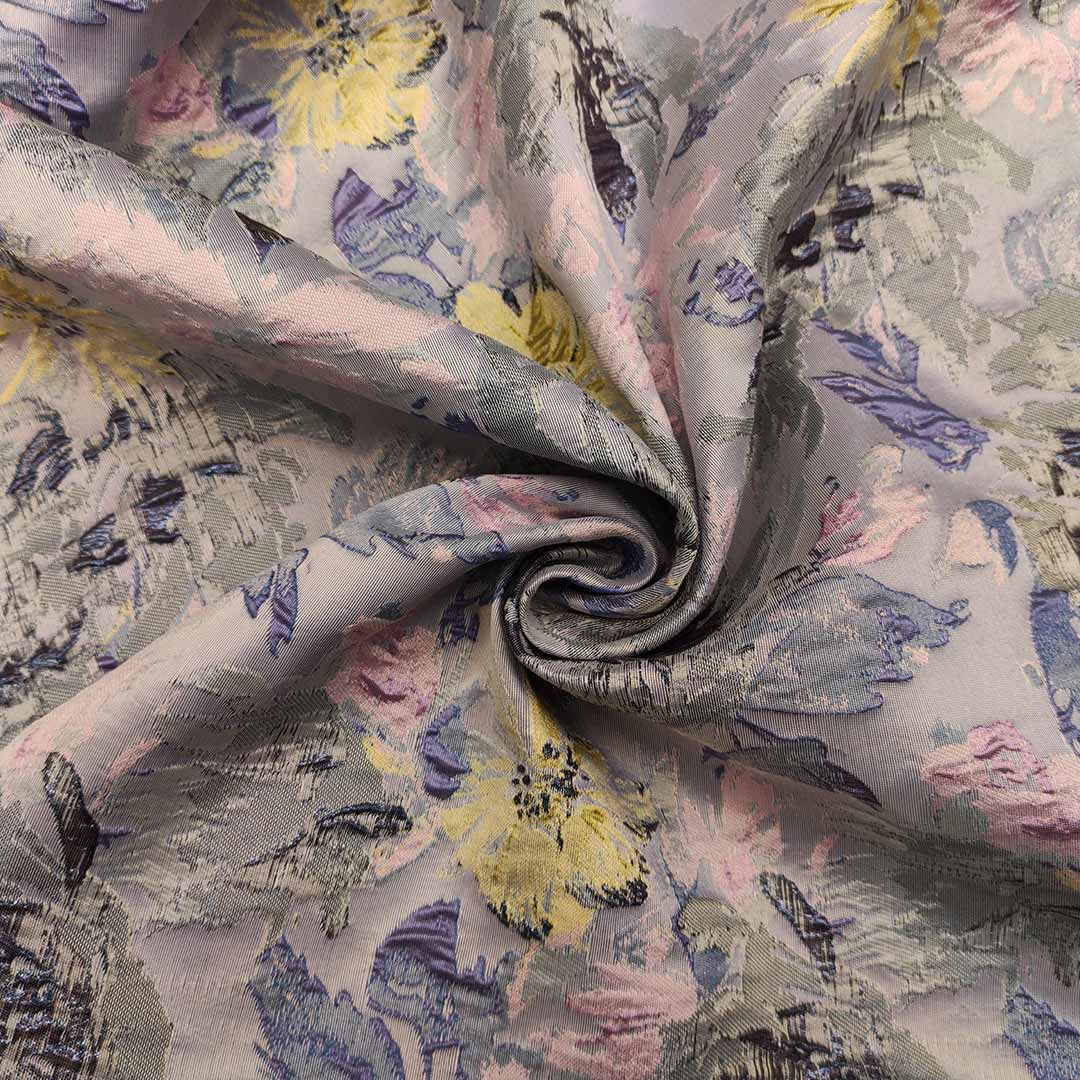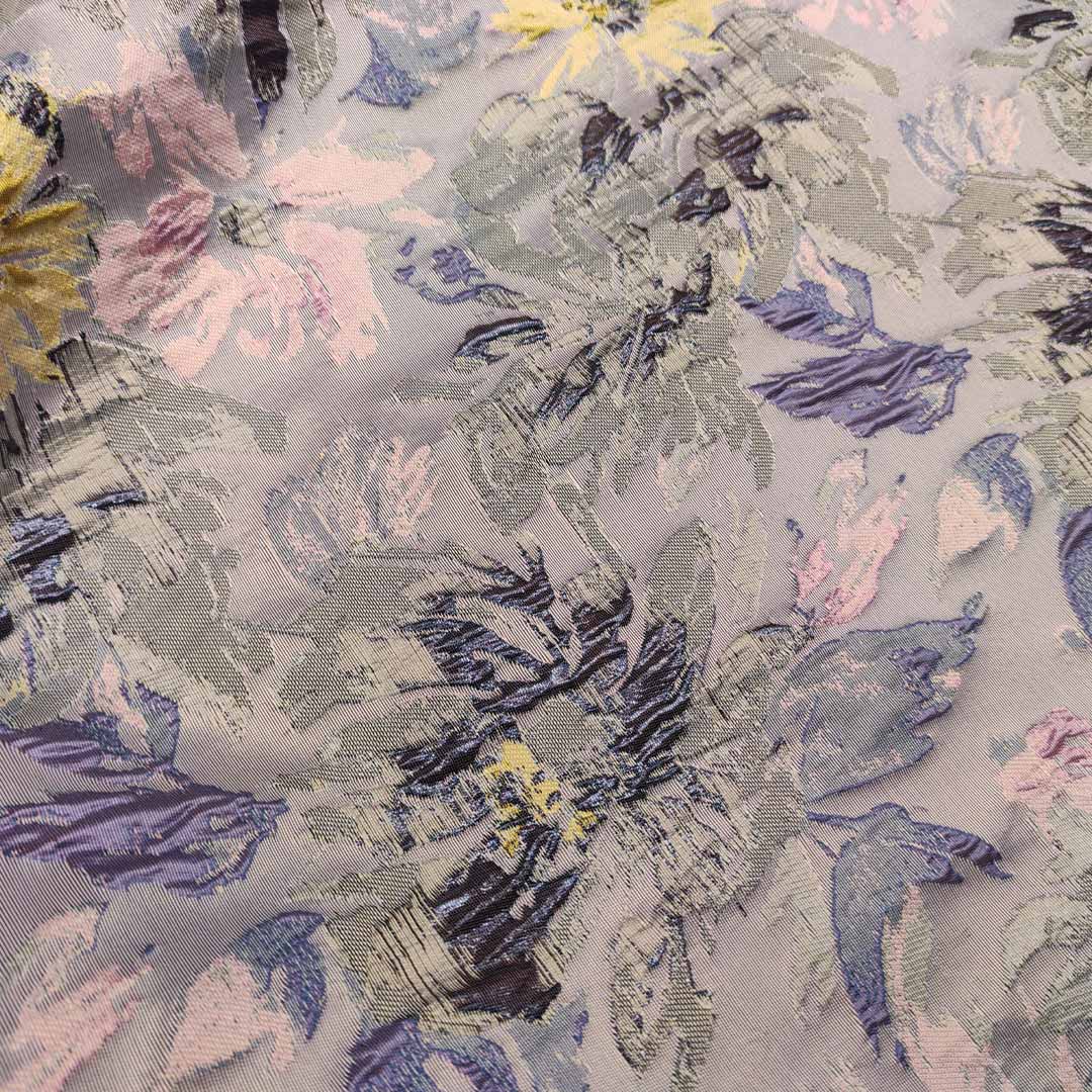 Tessuto Broccato in seta motivo floreale indaco – glicine – giallo – grigio