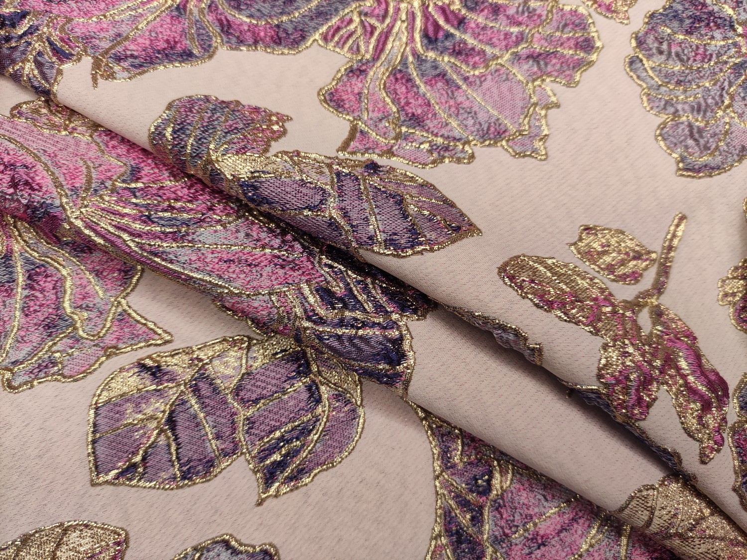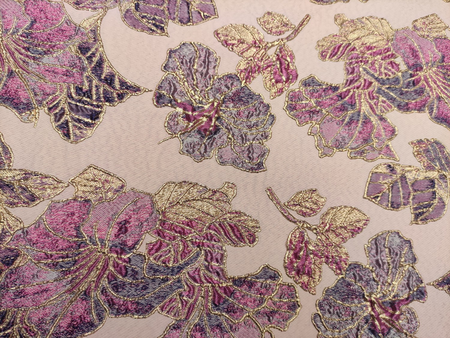 Tessuto Broccato in seta motivo floreale magenta – oro