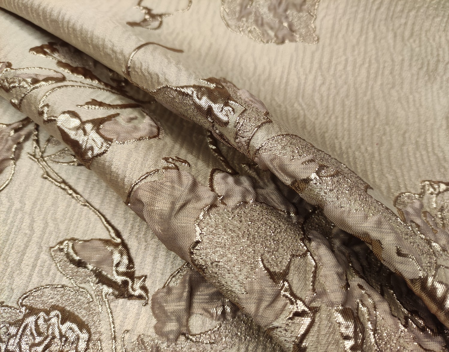 Tessuto Broccato in seta motivo floreale oro