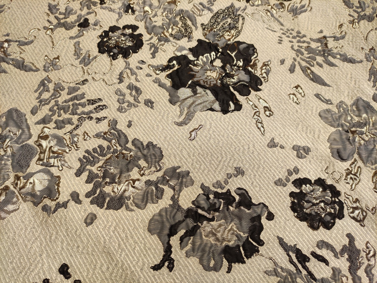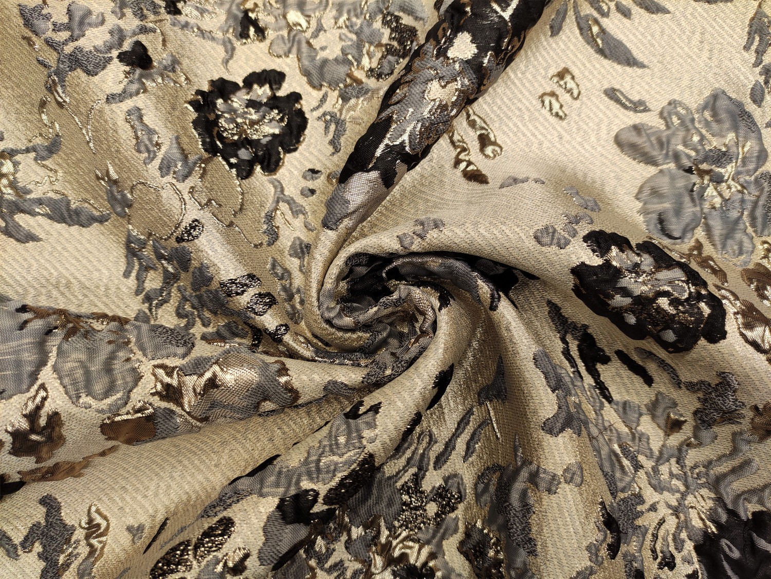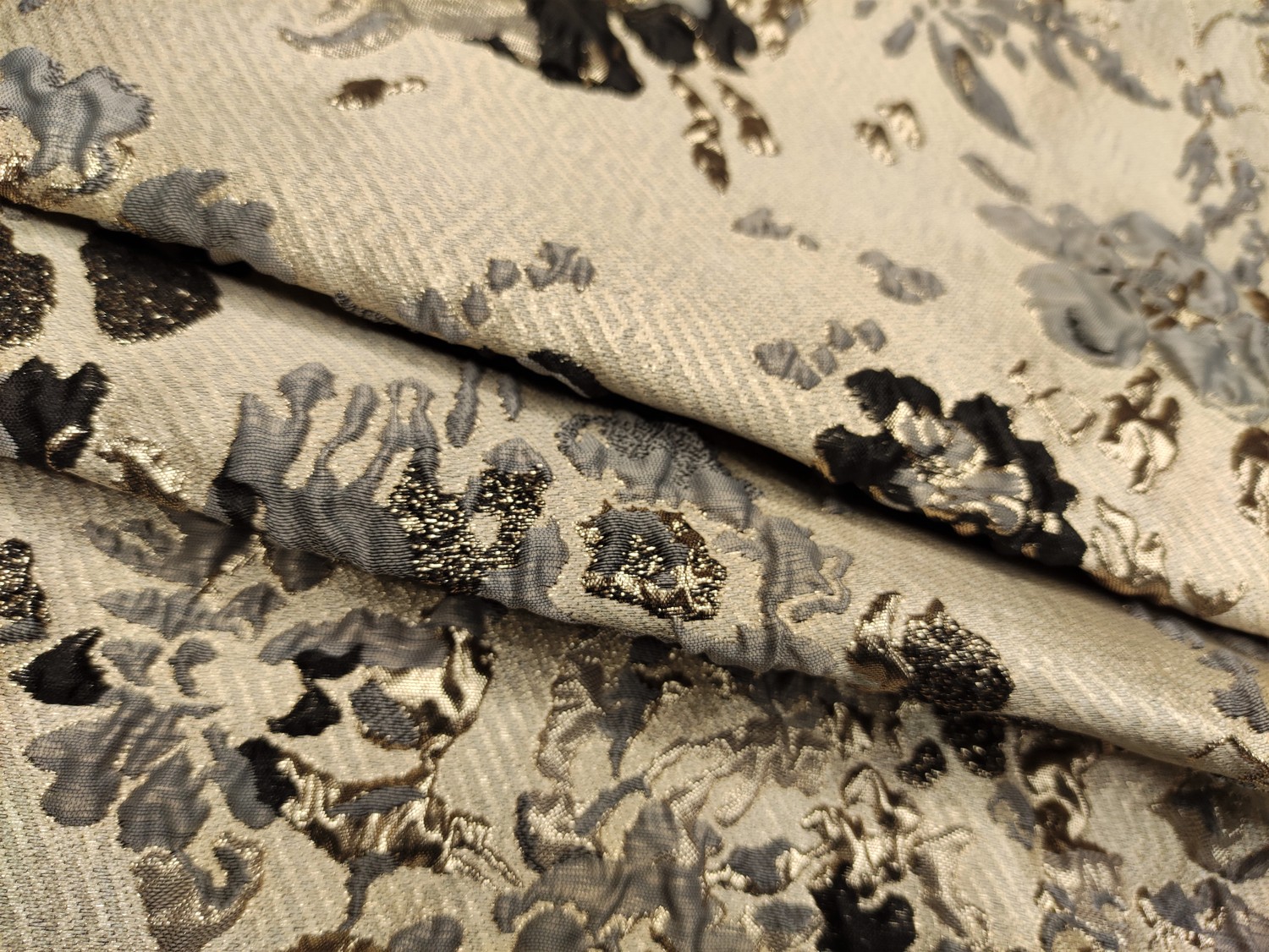 Tessuto Broccato in seta motivo floreale oro – grigio – nero
