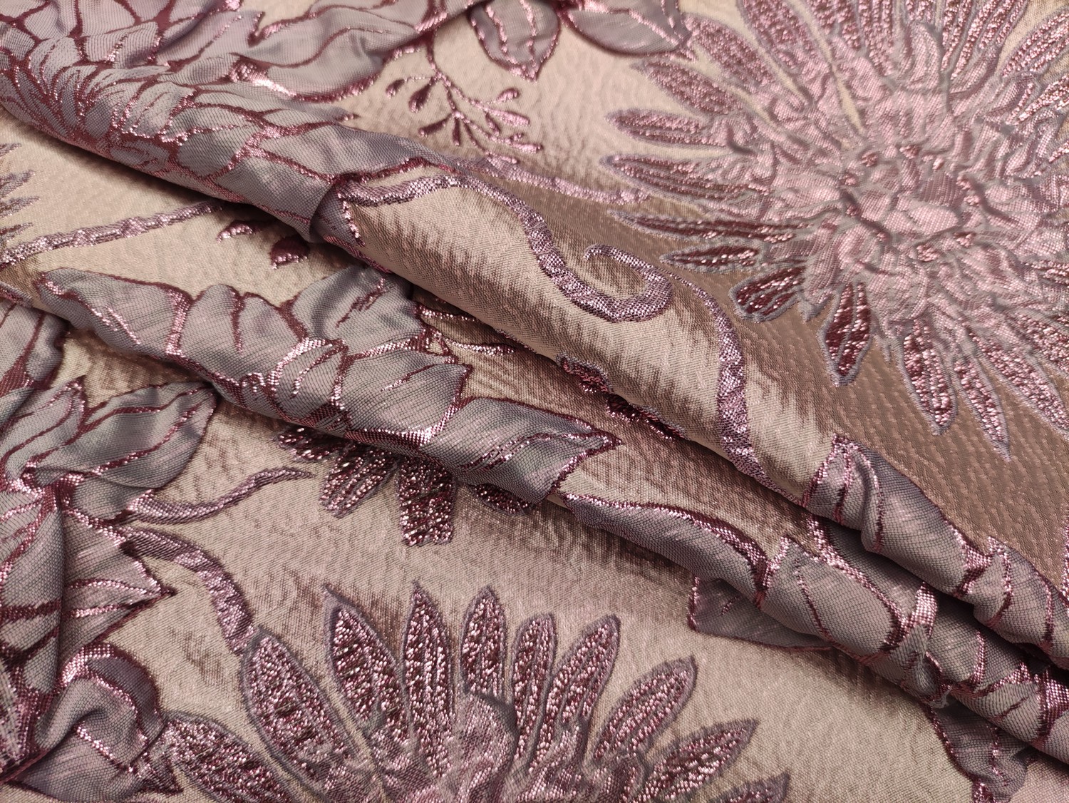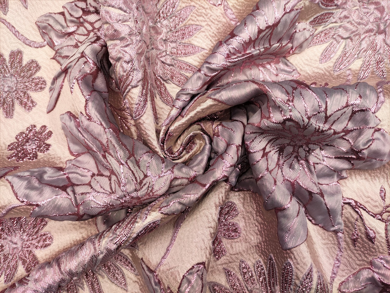 Tessuto Broccato in seta ideale per realizzare capi eleganti e strutturati, si presta alla creazione di abiti ampi, giacche e gonne.