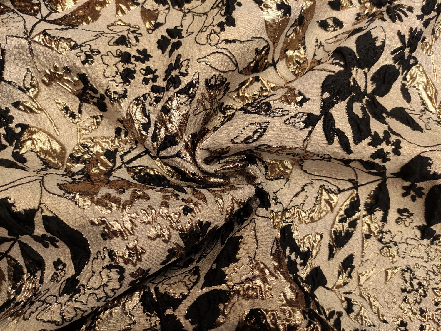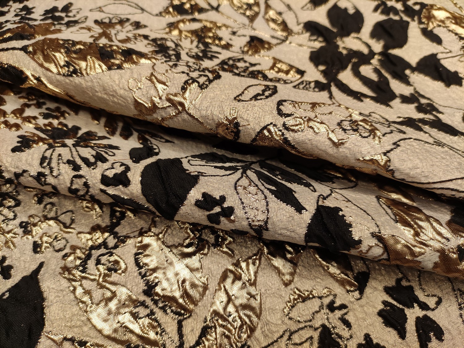 Tessuto Broccato in seta ideale per realizzare capi eleganti e strutturati, si presta alla creazione di abiti ampi, giacche e gonne.
