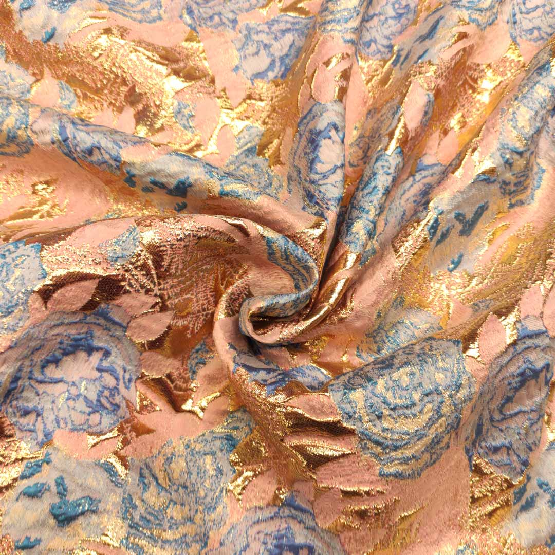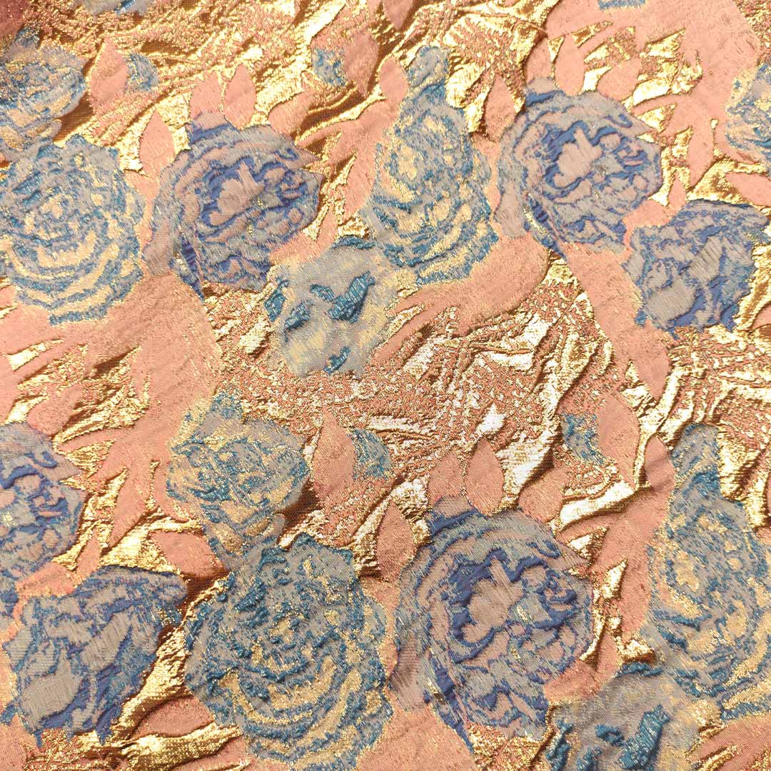 Tessuto Broccato in seta motivo floreale rosa antico – carta da zucchero – oro