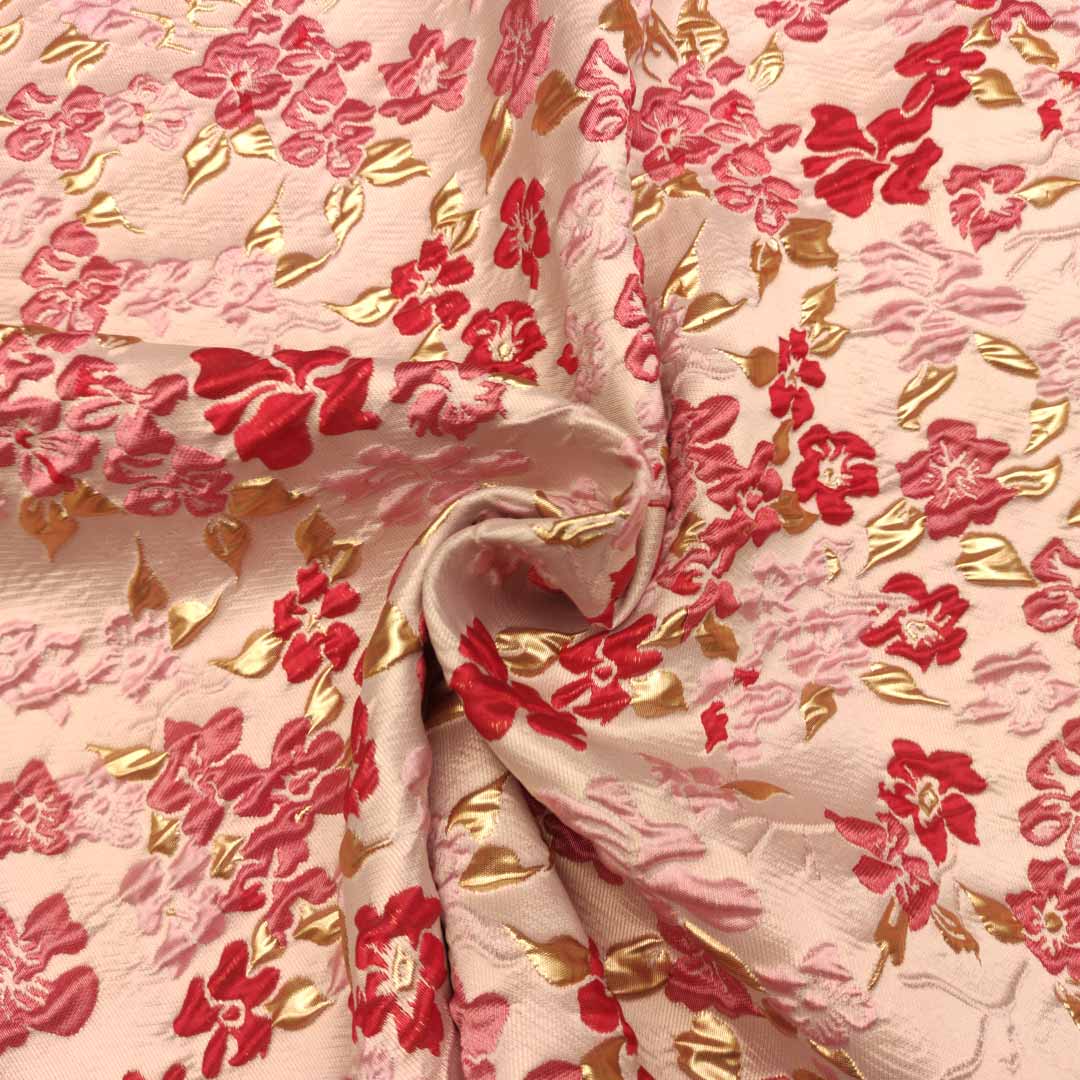 Tessuto Broccato in seta motivo floreale rosa – ciliegio – oro